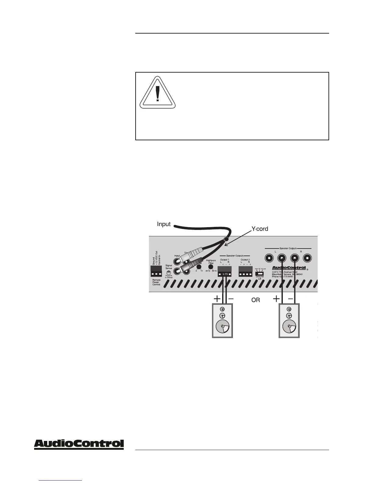 audio input to both channels of the amp using a ‘Y’ cord adapter