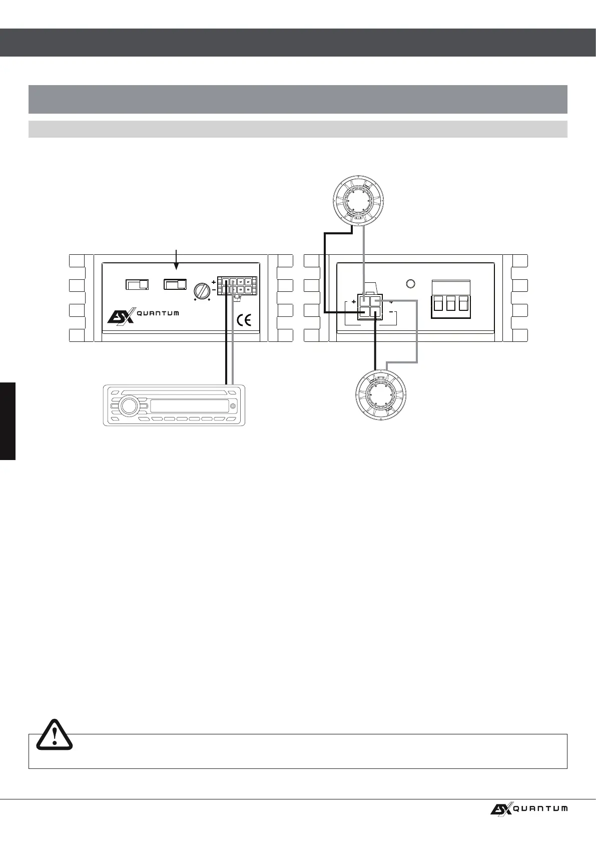 Do not connect loudspeaker cables with the vehicle’s chassis. Always ensure the correct polarity of all connections.