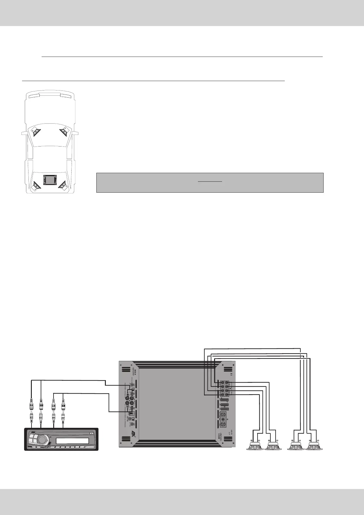 • Verbinden Sie die Front- und Heck-Lautsprecher mittels geeignetem Kabel mit den