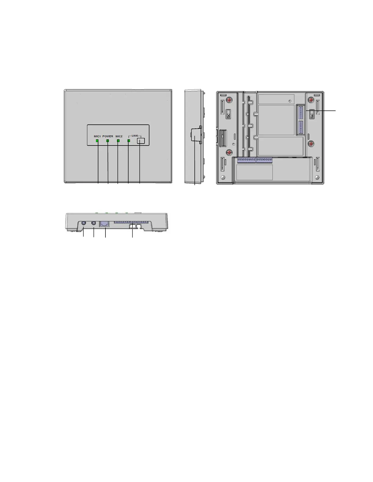 This LED lights green when this unit is receiving signals from each microphone under normal conditions.