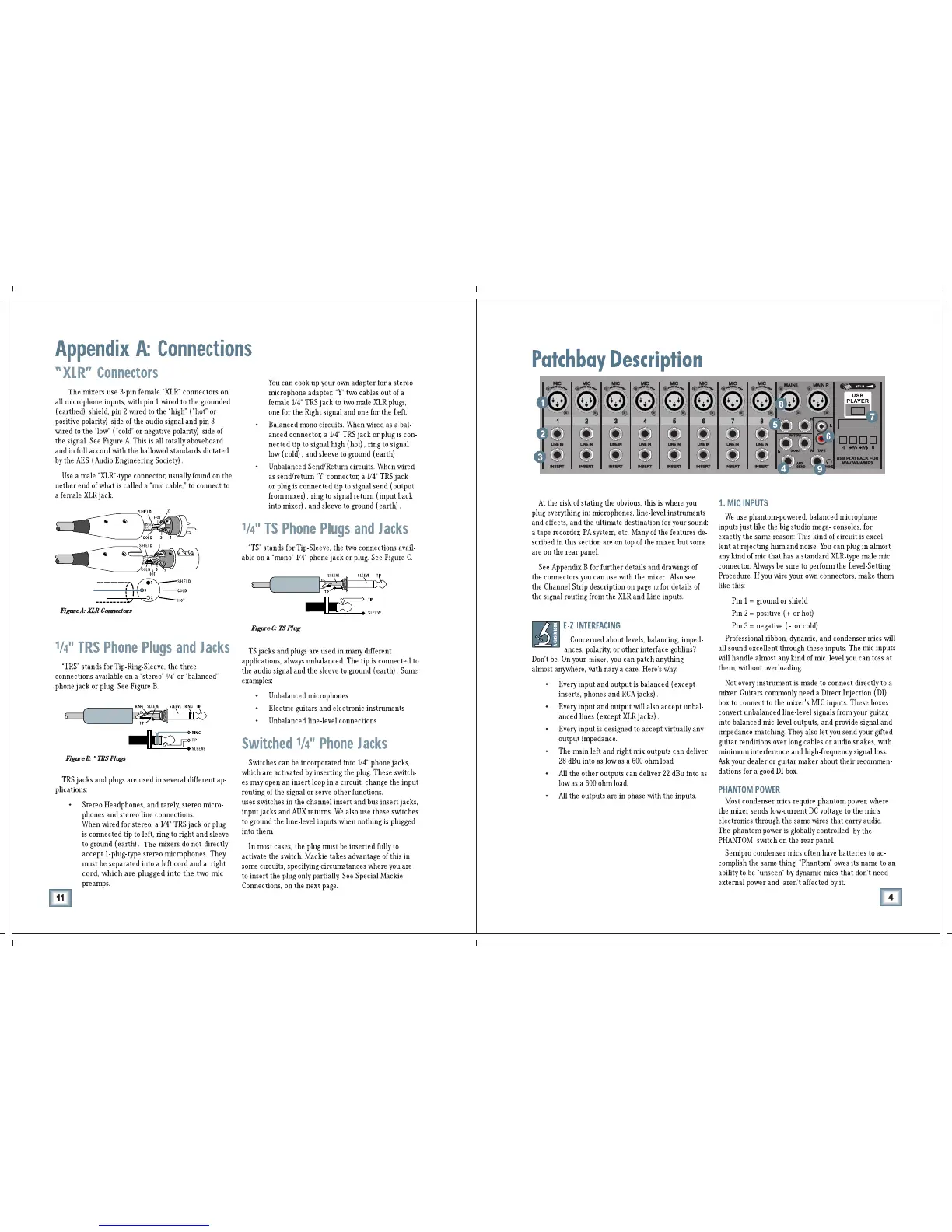 AUDIO MASTER MX series - Appendix A: Connections; XLR Connectors; 1;4 TRS Phone Plugs and Jacks; 1;4 TS Phone Plugs and Jacks