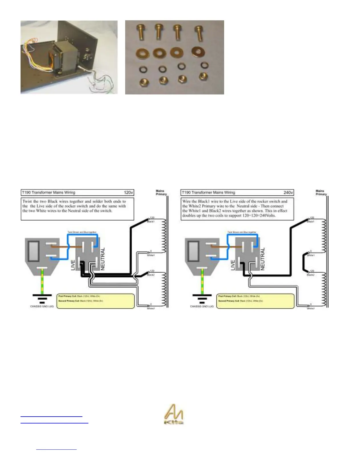 The supplied Mains Transformer is capable of being configured for different mains supply voltages. The examples here