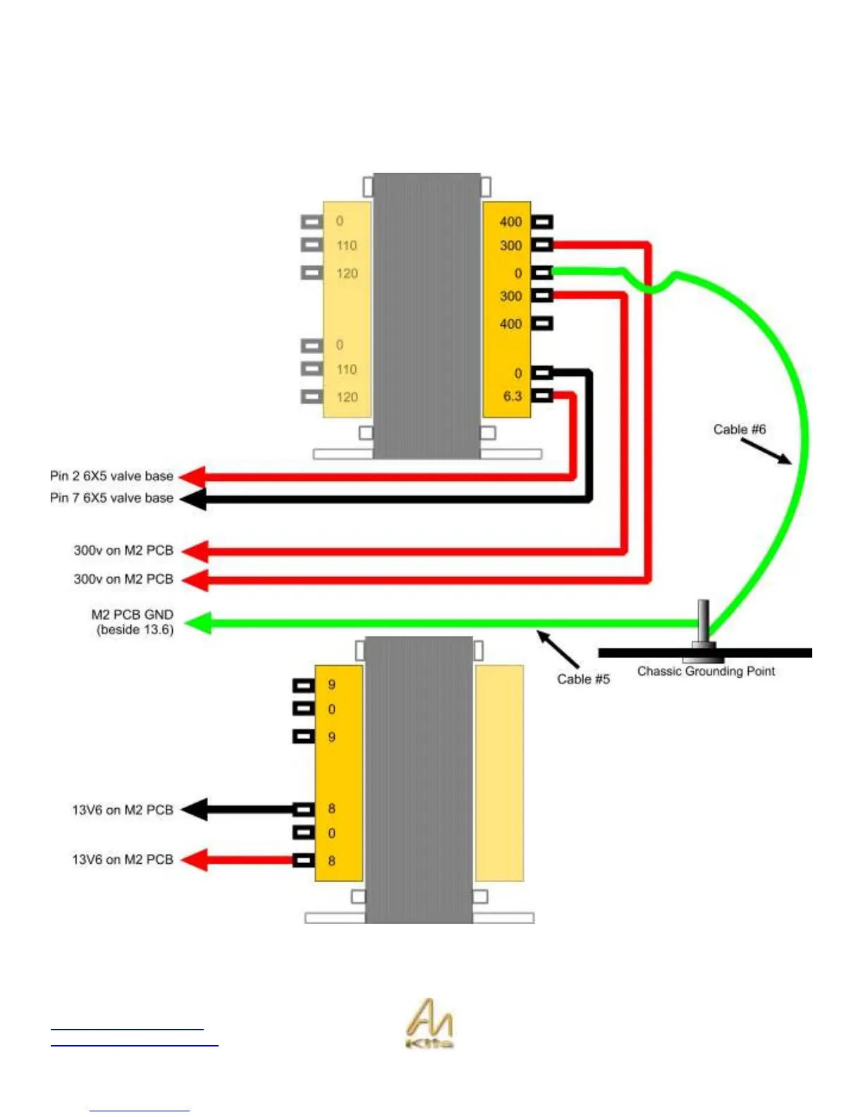 The following graphic shows the wiring between the M2 PCB and Mains Transformer. Note that the ‘second’ transformer