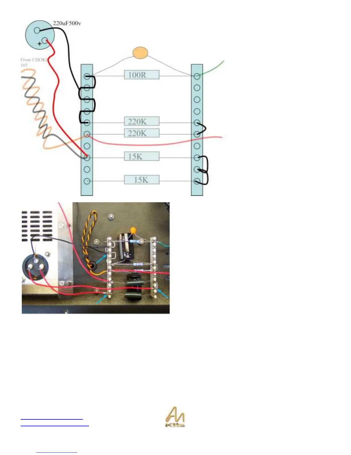 One 100Uf will be soldered to one end of the bottom 15K