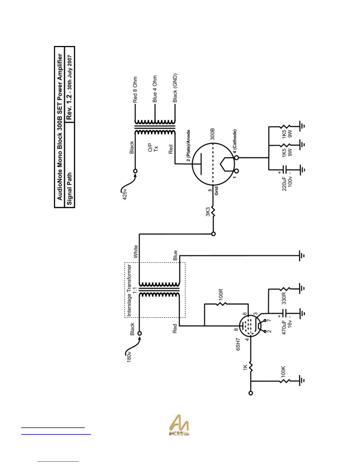 Audio Note Mono Block 300b/2A3 - Signal Path Schematic (Single 300 B)