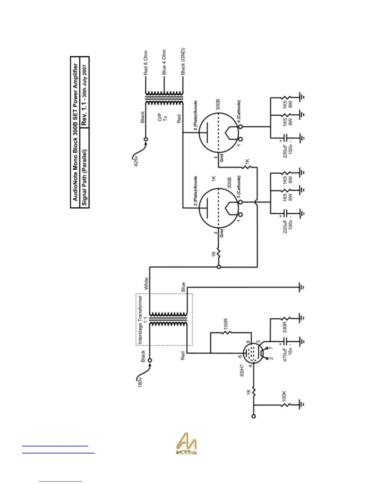 Audio Note Mono Block 300b/2A3 - Signal Path Schematic (Parallel 300 B)