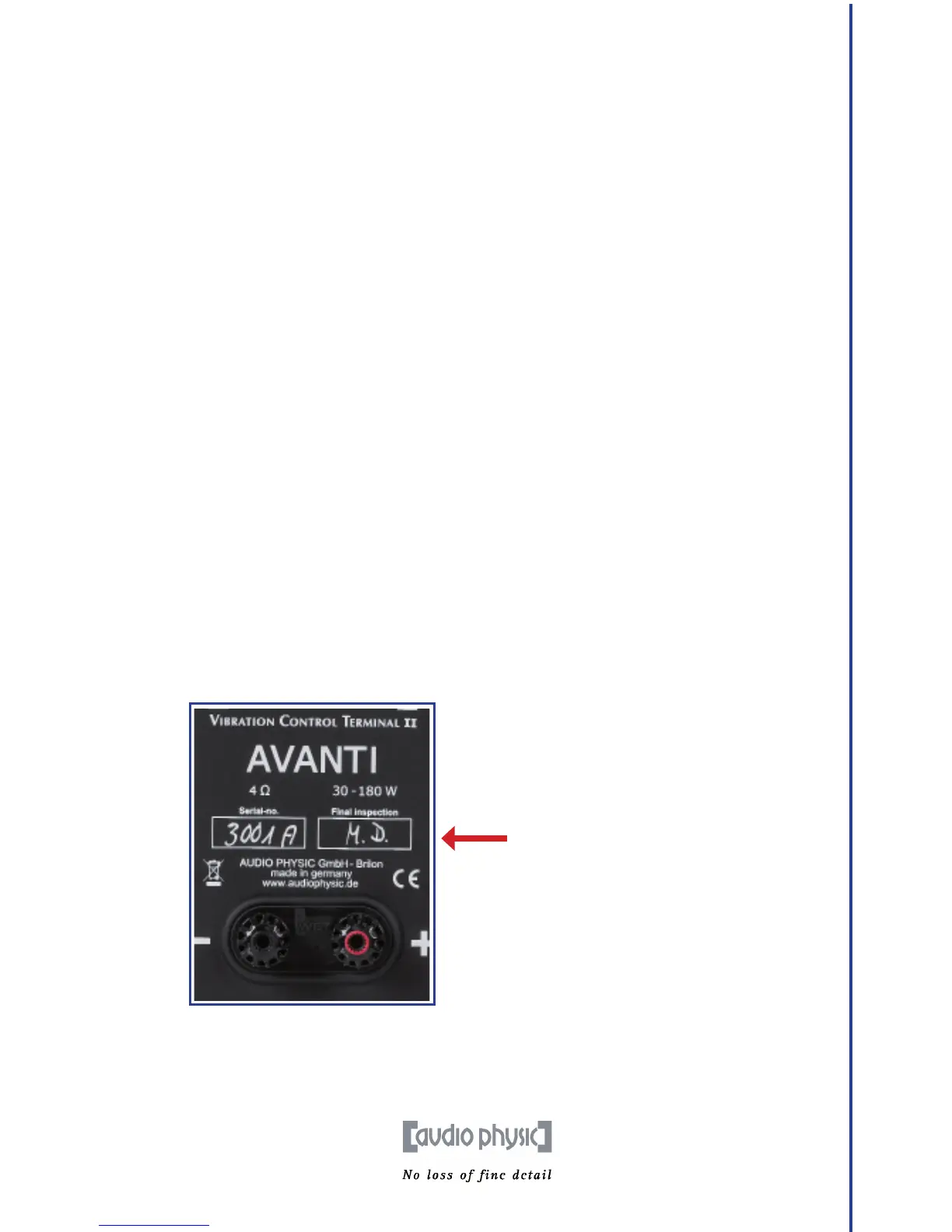 As a rule, your competent AUDIO PHYSIC dealer will deliver and install your loudspeakers. If you would rather install