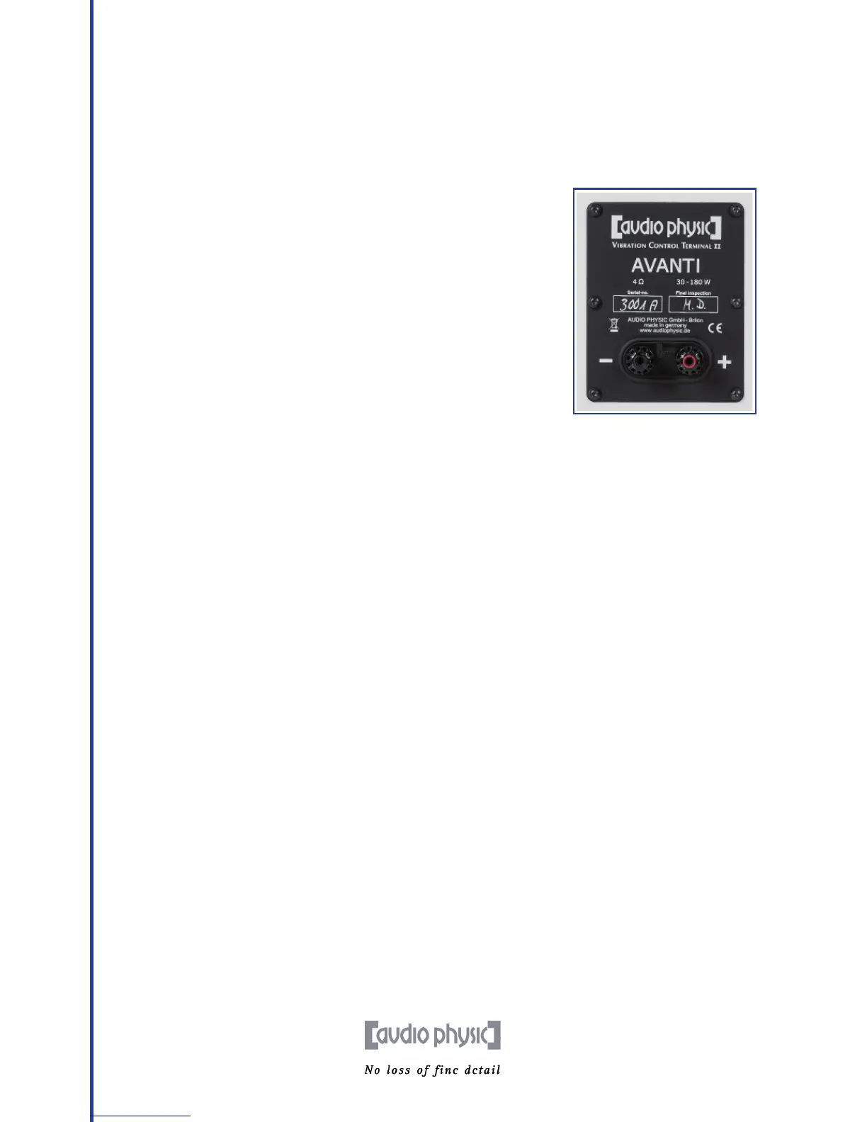 indicator) that helps you to connect cables with spades as explained under point 2. The connectors of the AVANTI