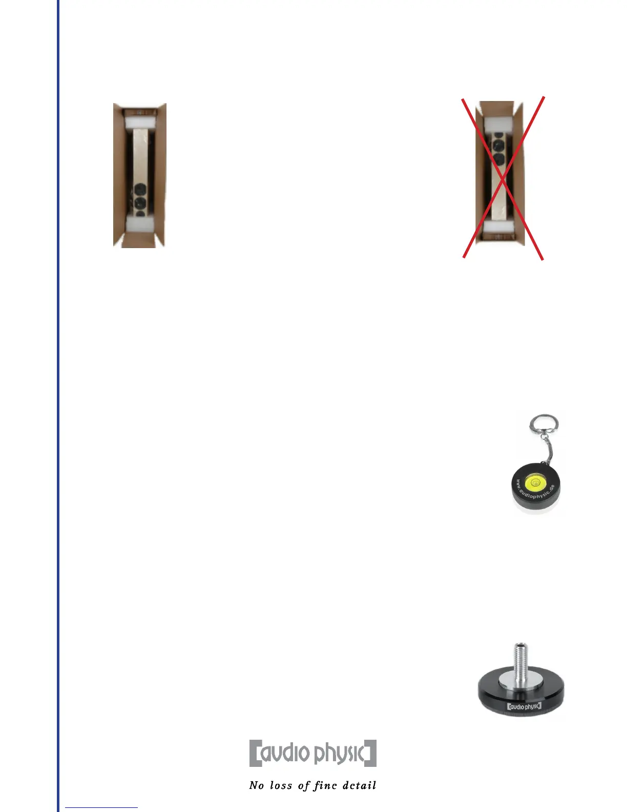 2. Remove the “Welcome to the Audio Physic“ package and the accessories.