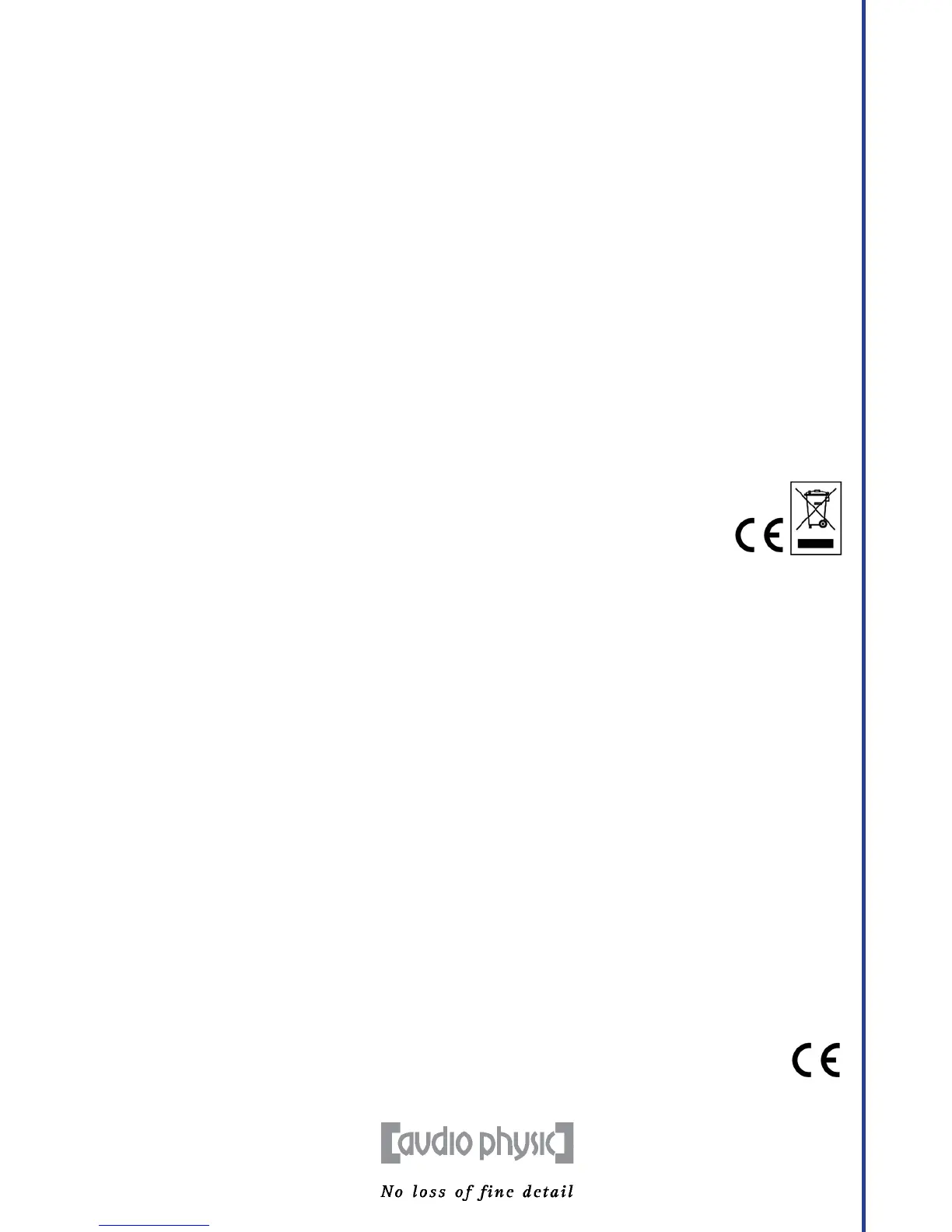 as well as your „Welcome to the Audio Physic Family“ package containing this Owner‘s Manual, the Final Inspection