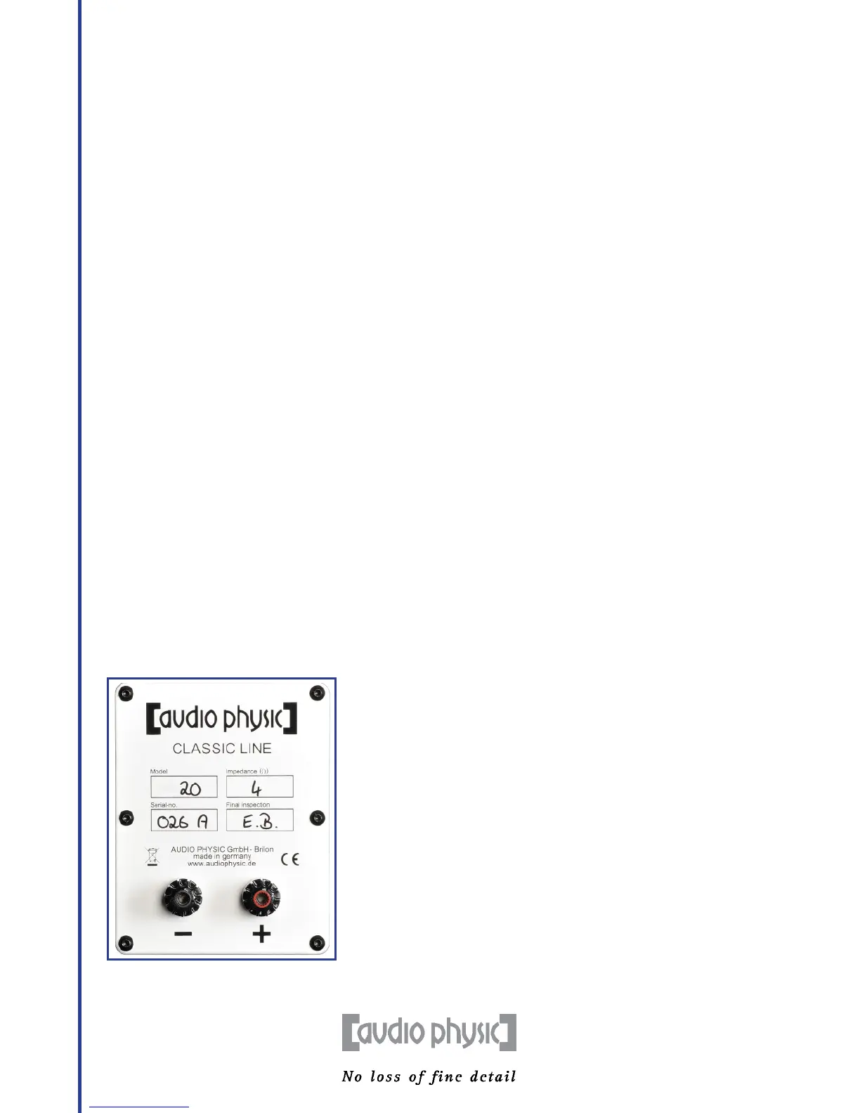 ren Inbetriebnahme. Viel Spaß mit Ihren neuen CLASSIC-Lautsprechern.