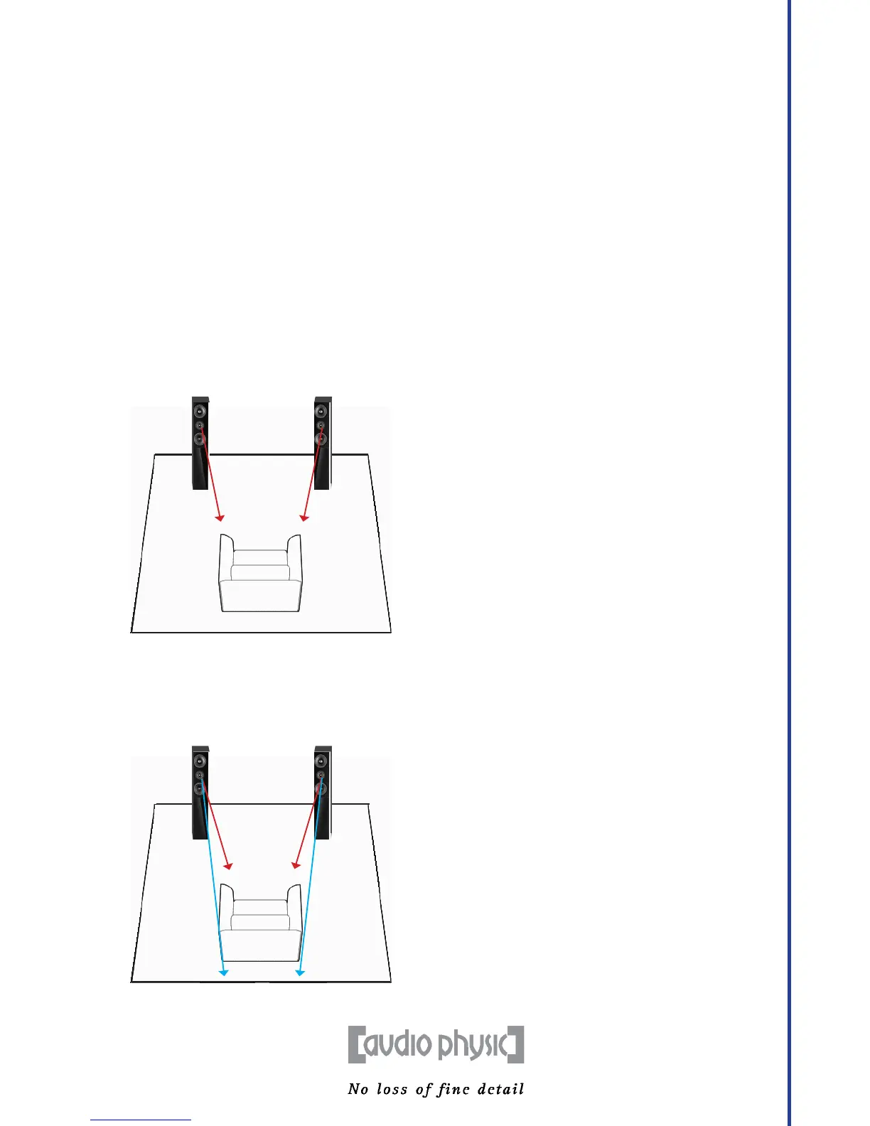 genießen, sollten sich die beiden gedachten Linien ausgehend von den Boxen an Ihrem Hörplatz „schneiden“.