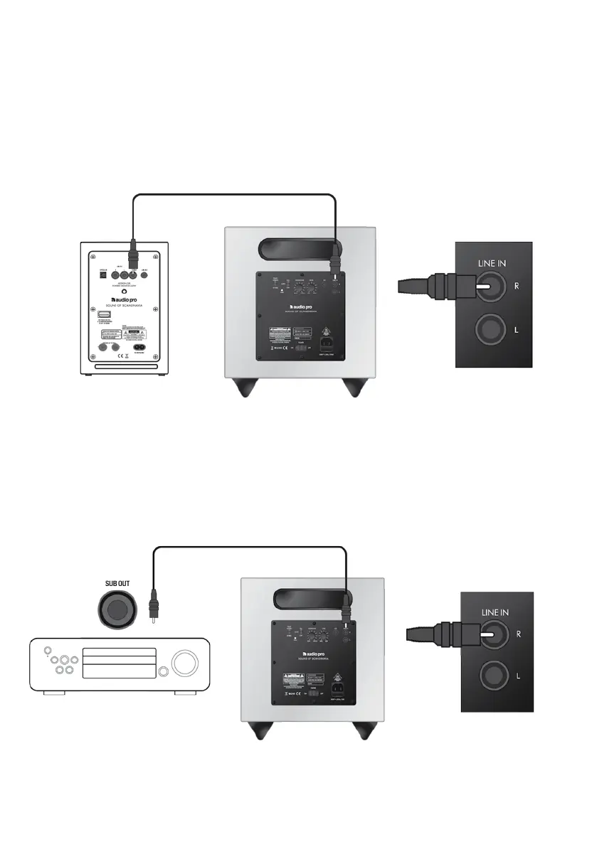 Lautsprechers (oder eines anderen Aktivlautsprechers mit Subwoofer-Ausgang) an. Schließen Sie dann das andere