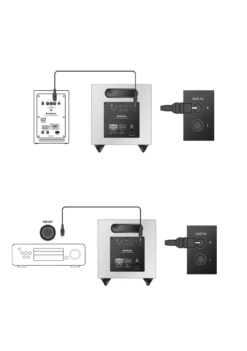 Utilice el cable RCA proporcionado y conéctelo a la salida sub del altavoz Addon (o a cualquier altavoz por