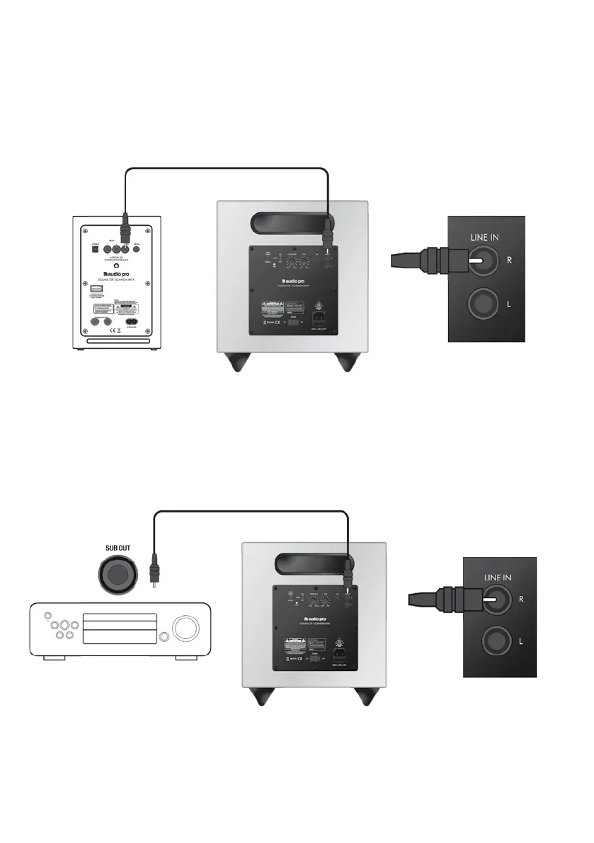 Use supplied RCA cable and connect to subout on your stereo/receiver, then connect the cable to RCA input