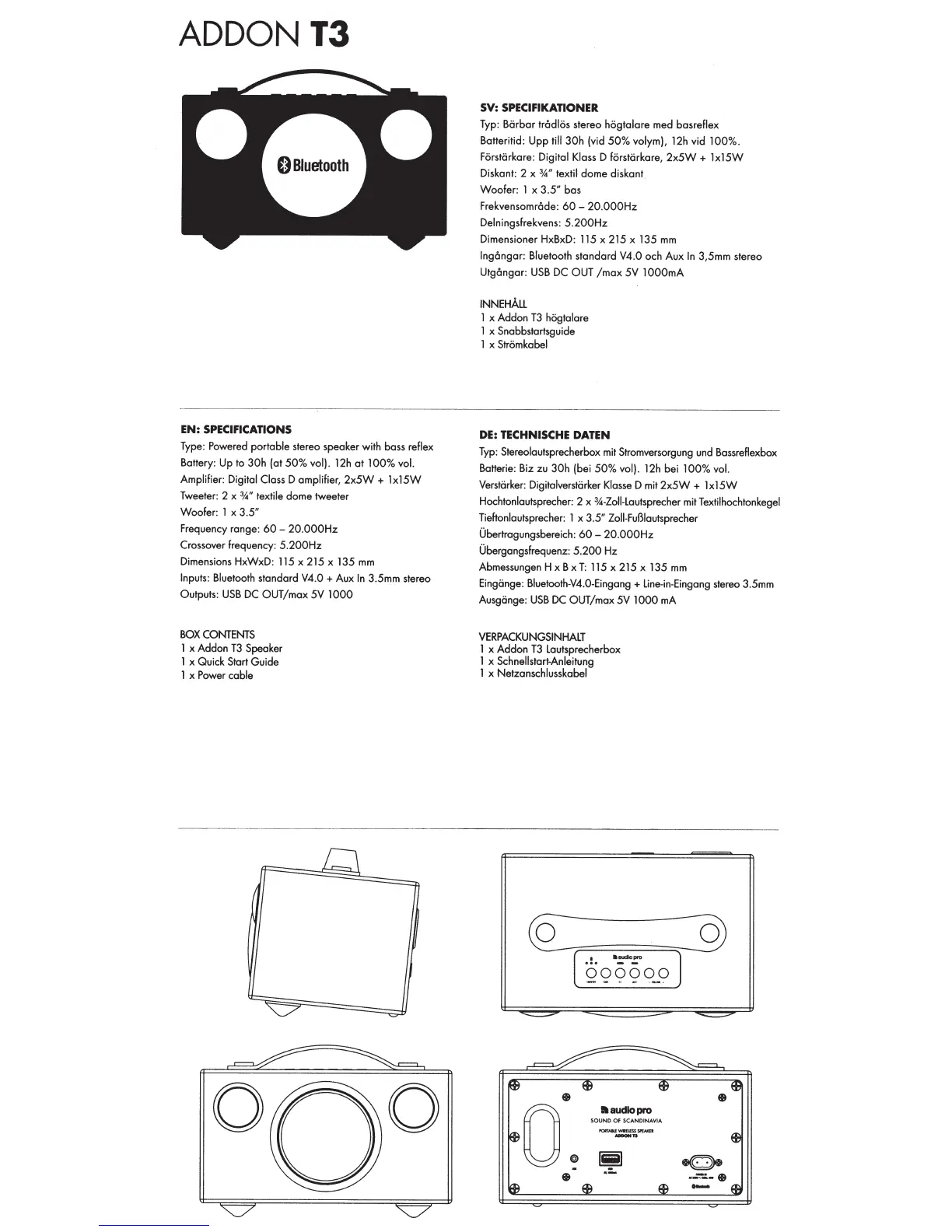 Eingiinge: Bluetooth-V4.0-Eingang