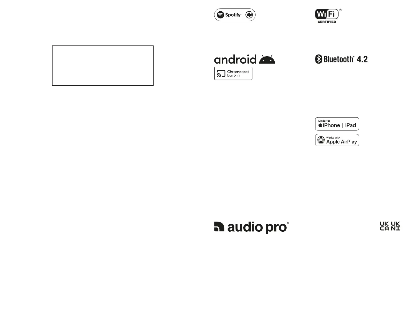 Audio Pro wireless technology, Google Cast, AirPlay 2, Spotify Connect.