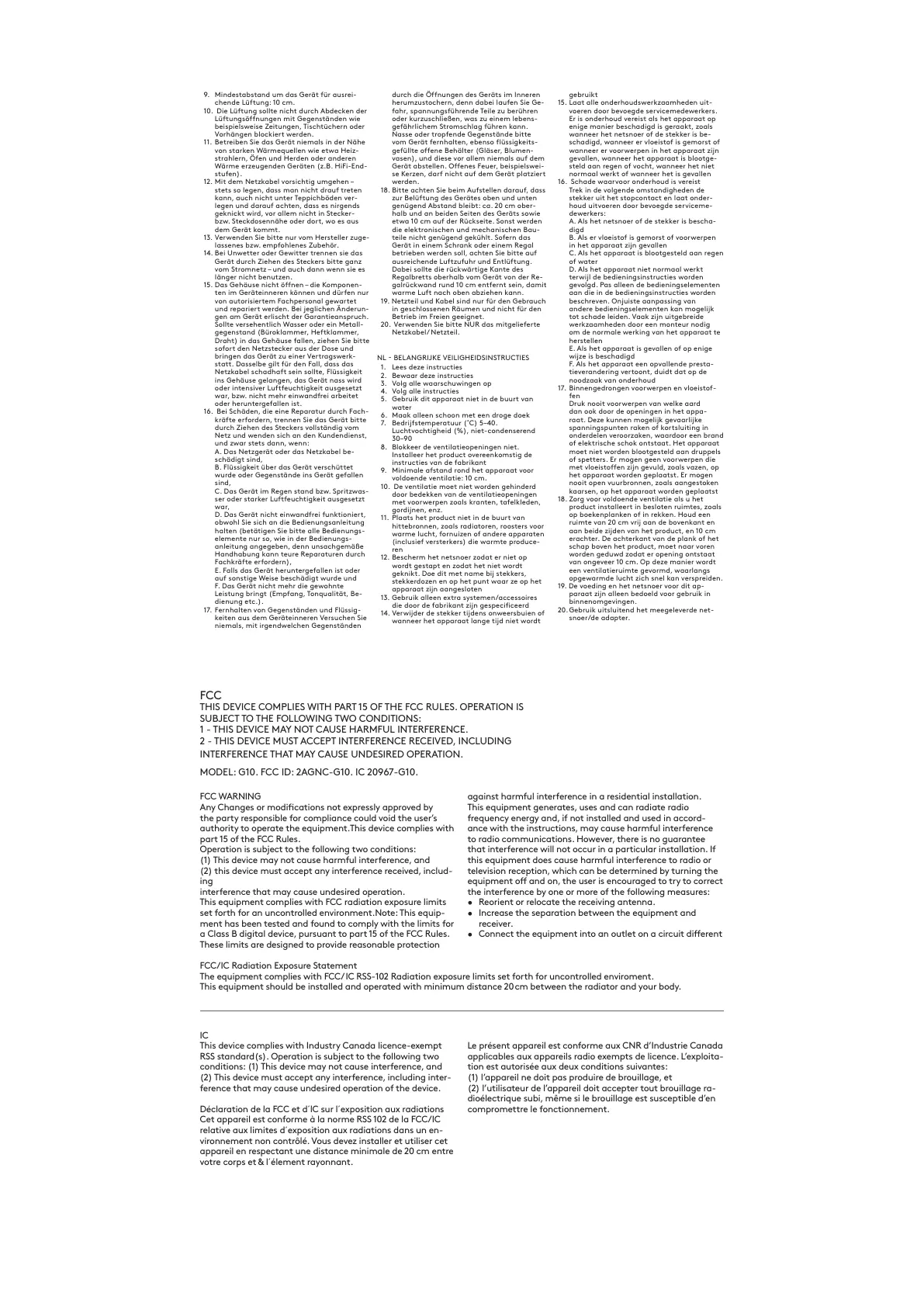 MODEL: G10. FCC ID: 2AGNC-G10. IC 20967-G10.