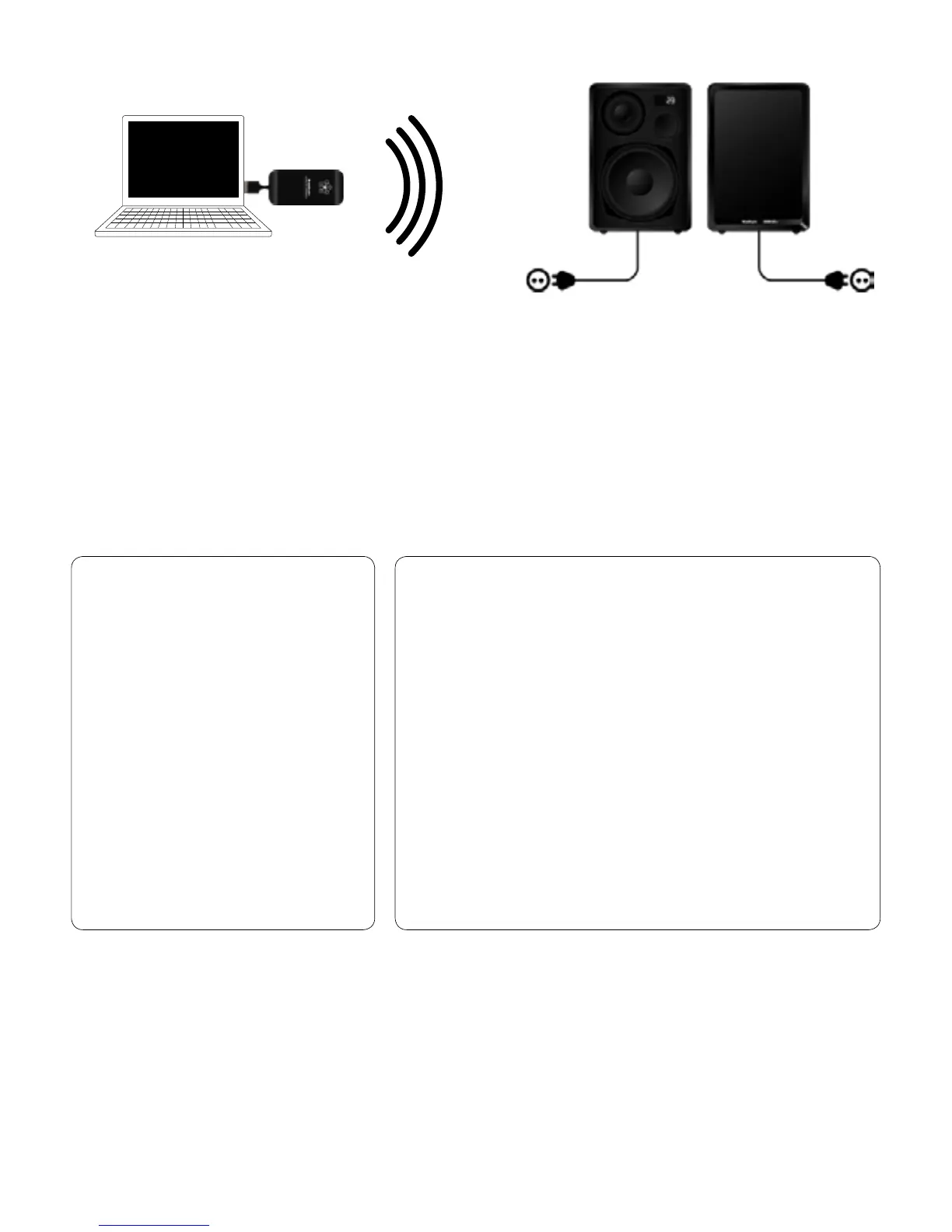 Led-lampa lyser blått på både högtalare och sändare när trådlös länk är upprättad.