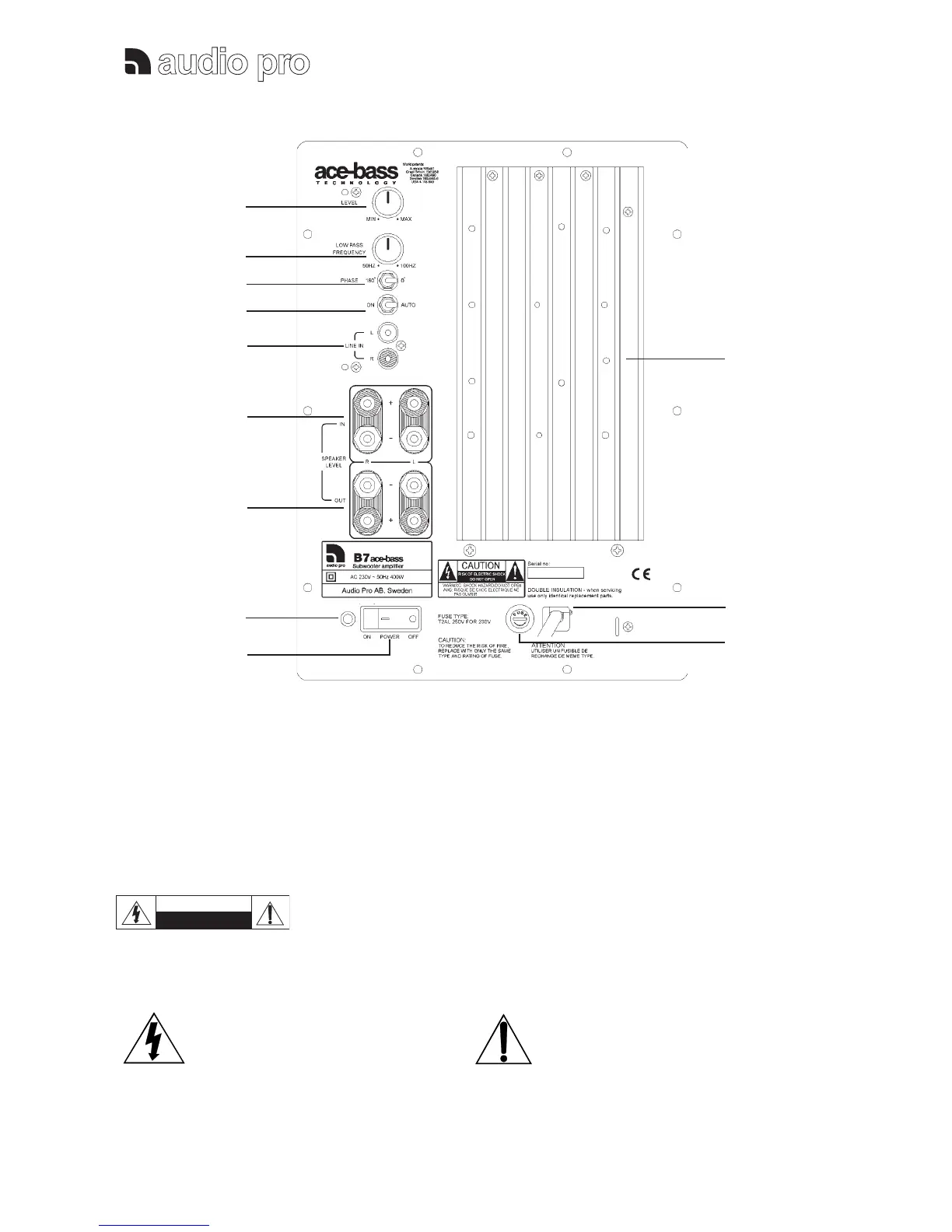 Low level input (L & R) from amplifier