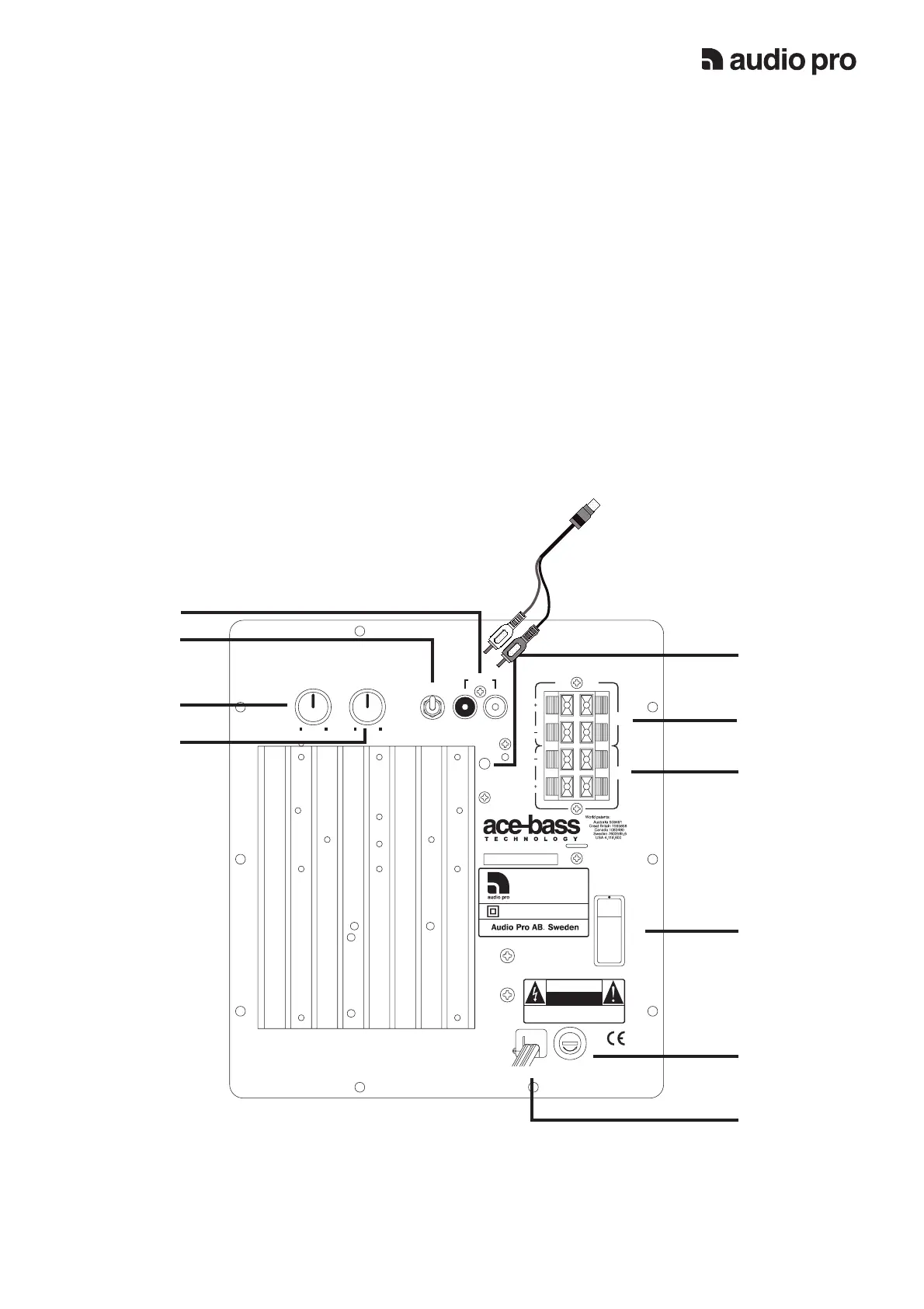In ‘ON ‘ mode : De interne versterker v.d. subwoofer