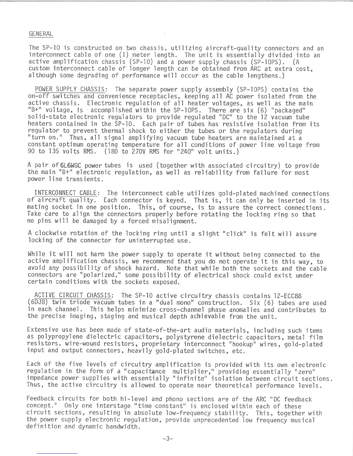 Audio Research SP10 - General; Power Supply Chassis; Interconnect Cable; Active Circuit Chassis