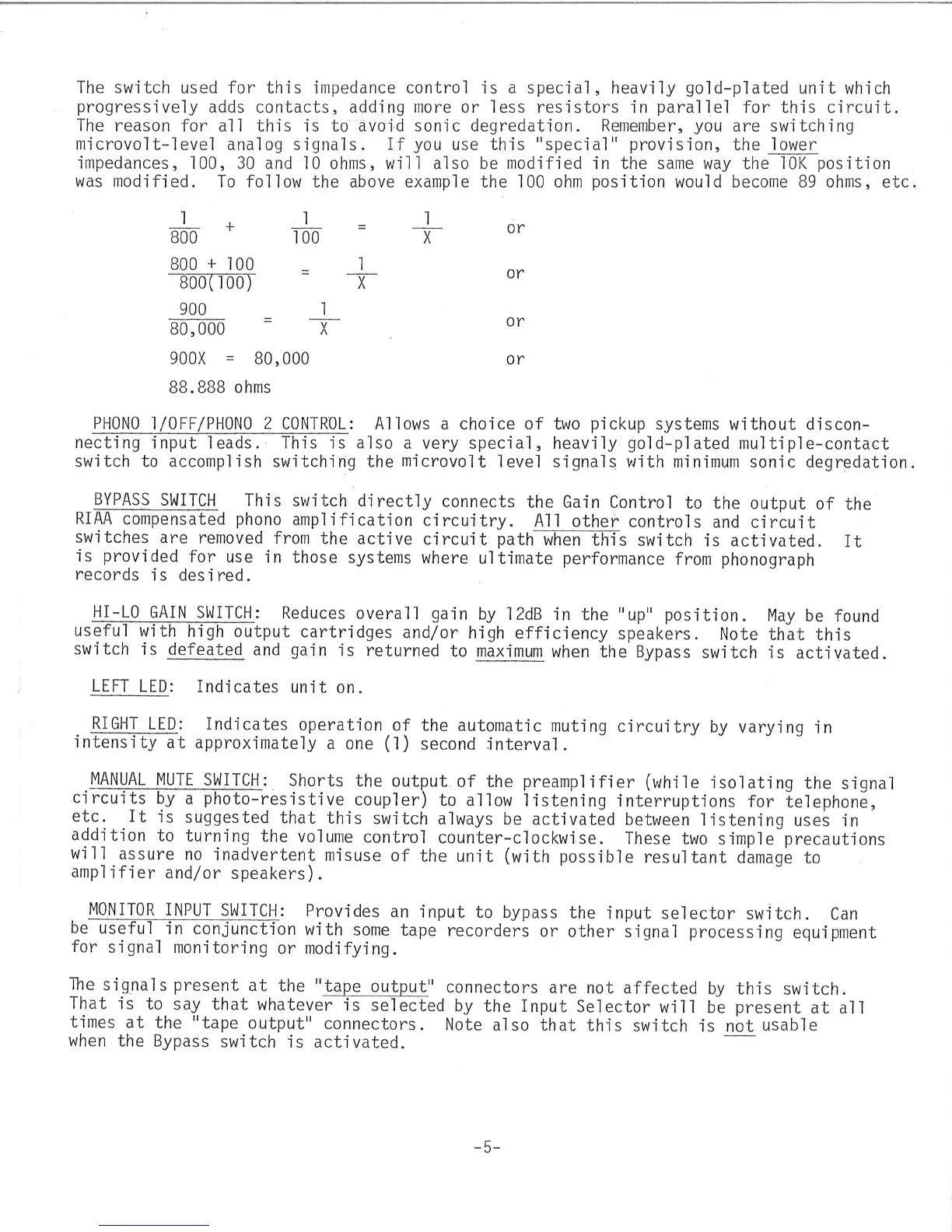 Audio Research SP10 - Phono 1;Off;Phono 2 Control; Bypass Switch; Hi-Lo Gain Switch; Left LED