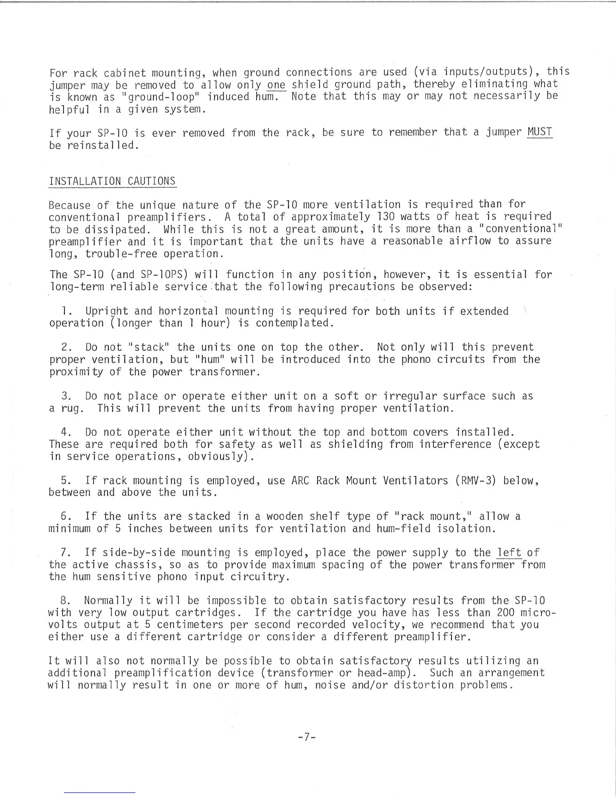 Audio Research SP10 - INSTALLATION CAUTIONS; Safety and Shielding