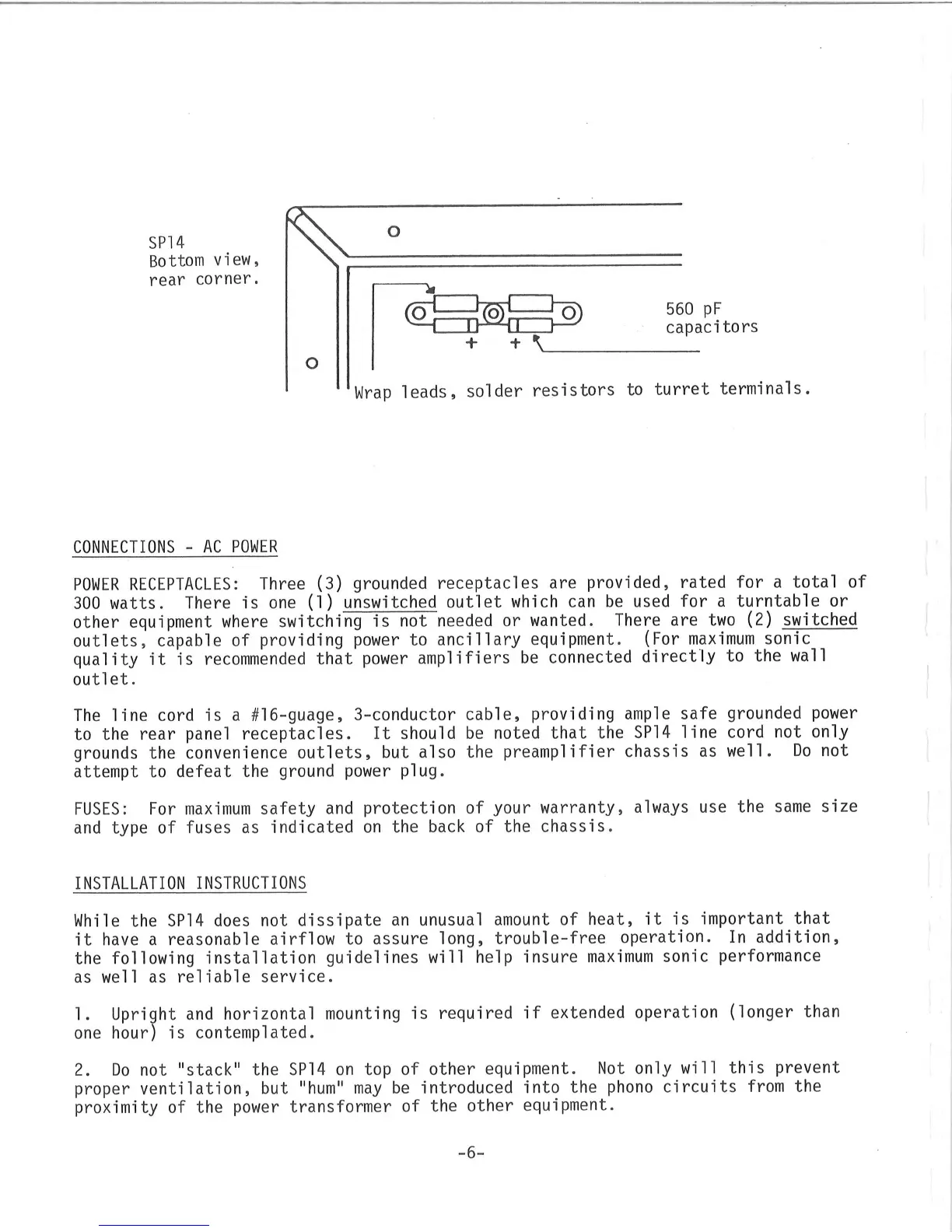 Audio Research SP14 - AC Power and Fuses; Installation Instructions