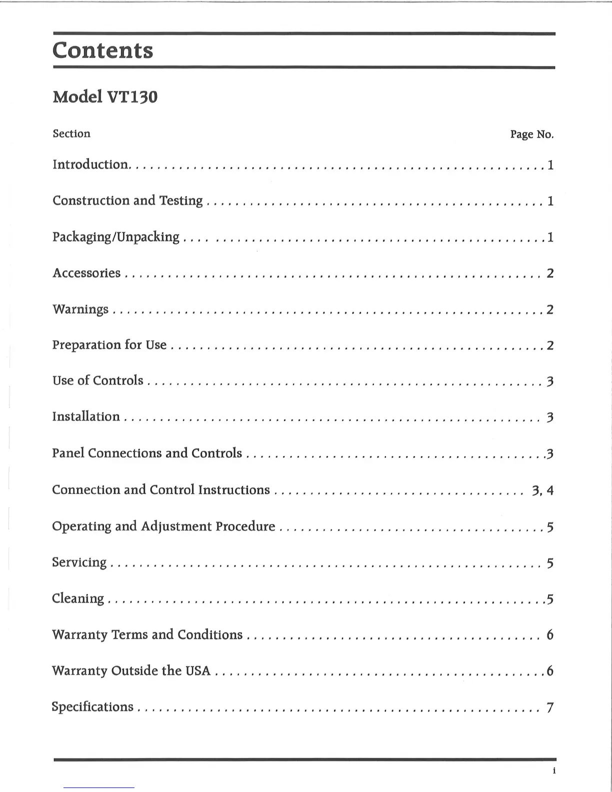 Audio Research VT130 - Contents