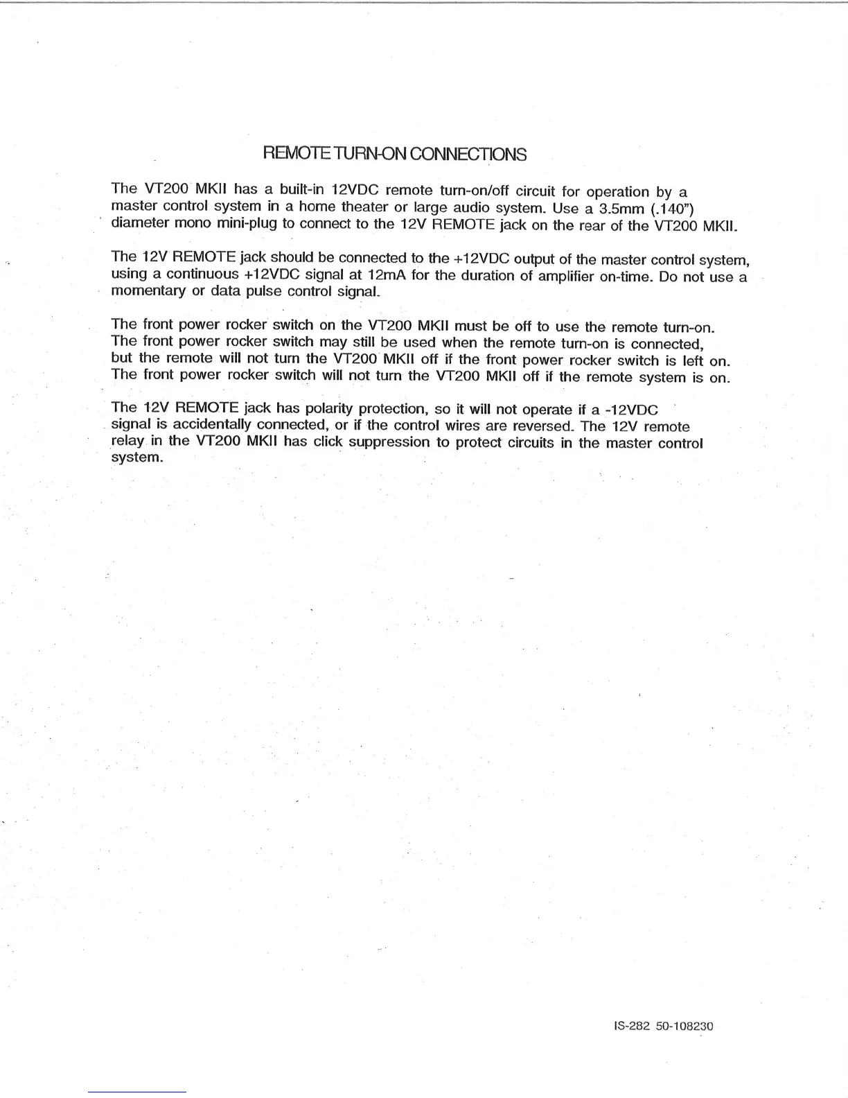 Audio Research VT200 - Remote Turn-On Connections; Using the 12 V Remote Turn-On Circuit