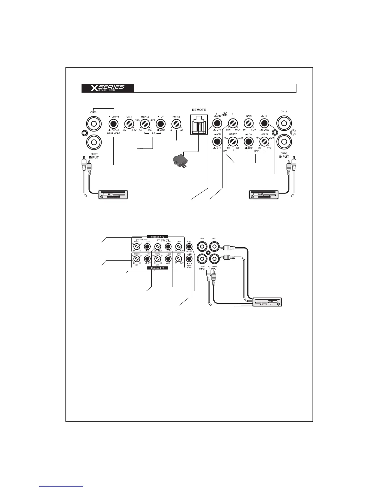 The x series amplifier offers RCA-Inputs, which are connected through cinch cables with the