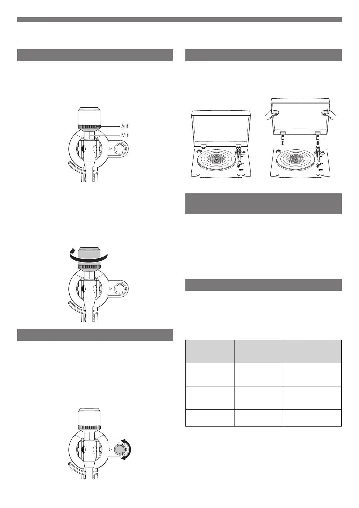 an der Rückseite des Plattenspielers, um die Staubschutzhaube anzubringen.