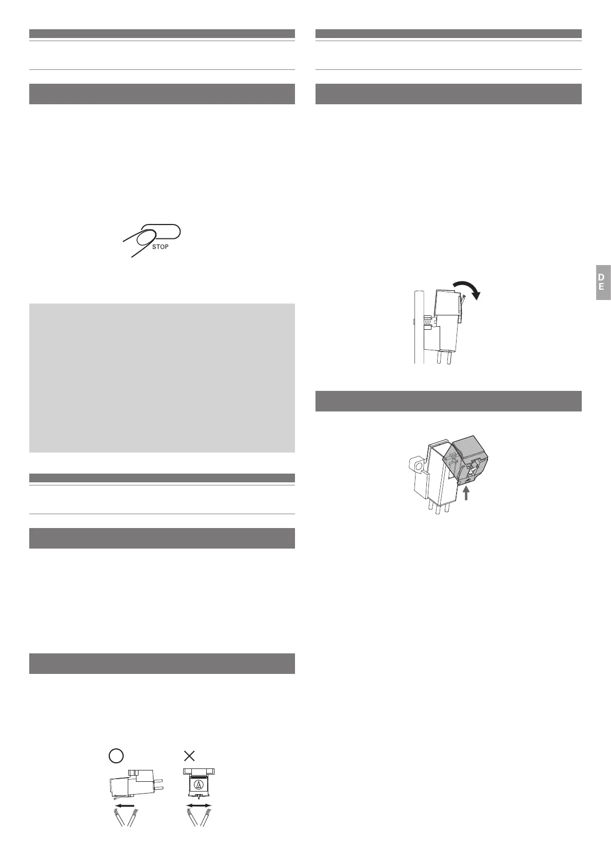nicht. Dies könnte zu einer Fehlfunktion des Geräts führen. Wenn der Tonarm