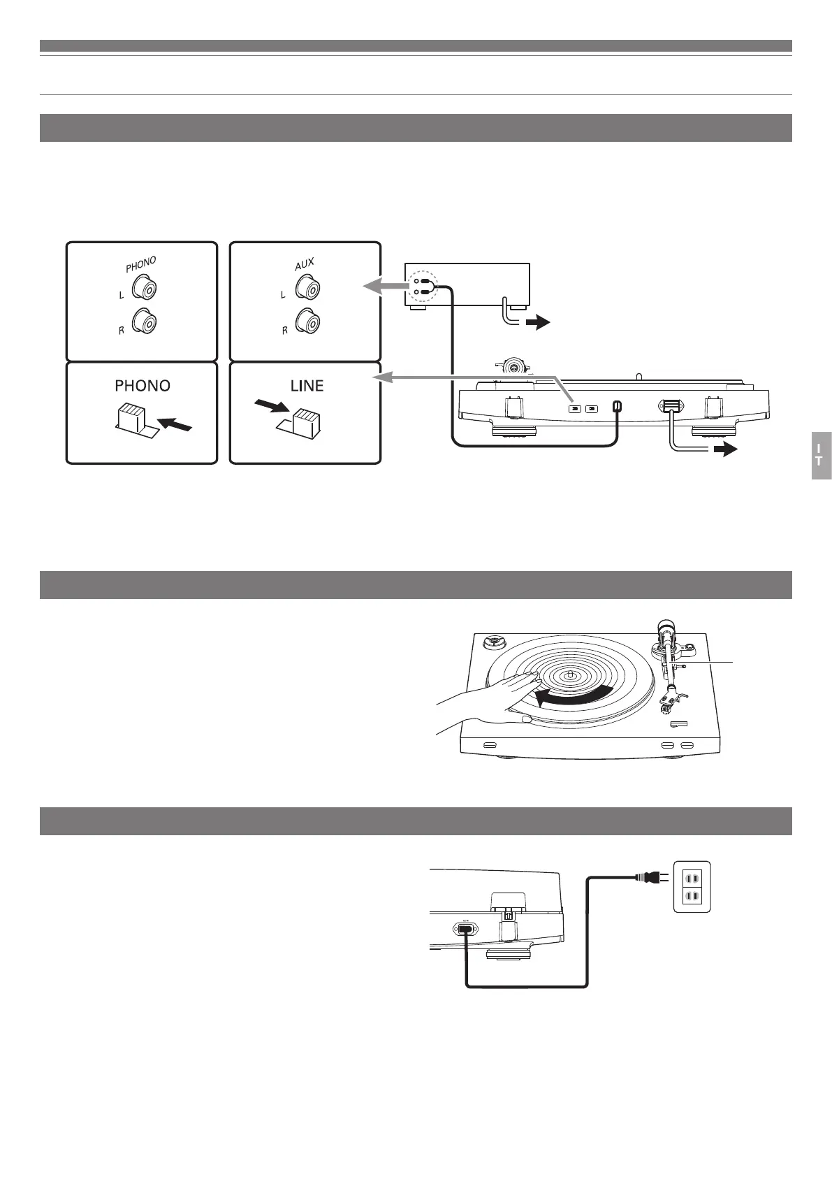 Allineare le impostazione per il selettore preamplificatore e collegare il cavo audio RCA a un jack di ingresso che è compatibile con l’apparecchiatura collegabile in
