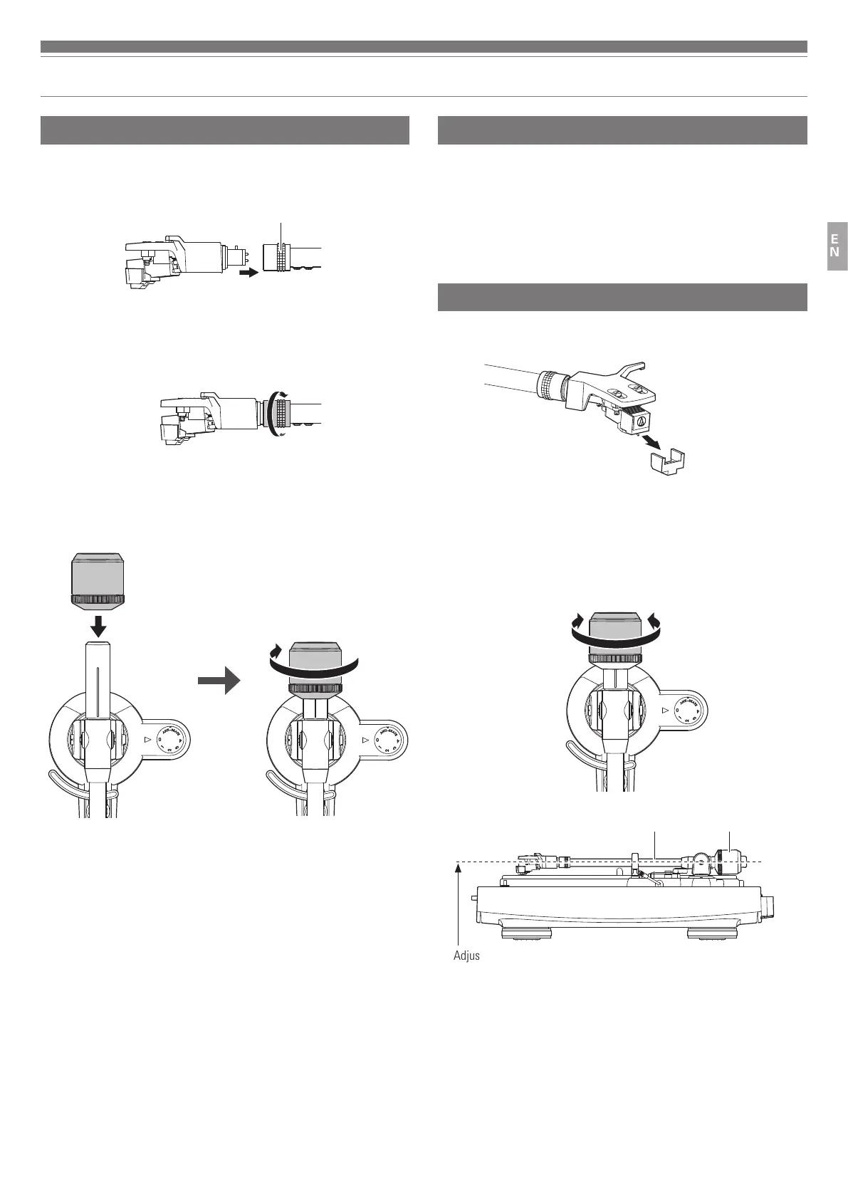 adjusting the tonearm’s balance or tracking force. Doing so may damage the