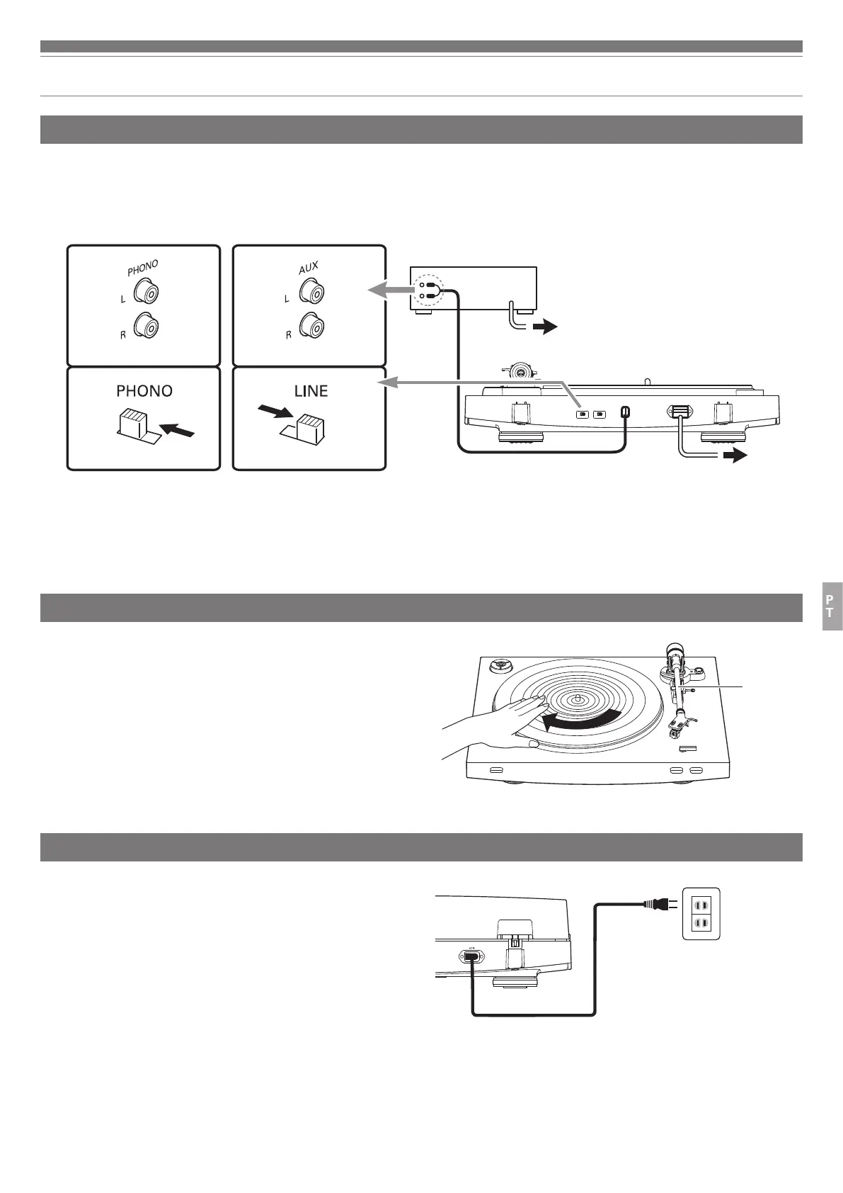 Selecione a posição correta para o interruptor do seletor do pré-amplificador e conecte o cabo de áudio RCA a um conector de entrada que seja compatível com o