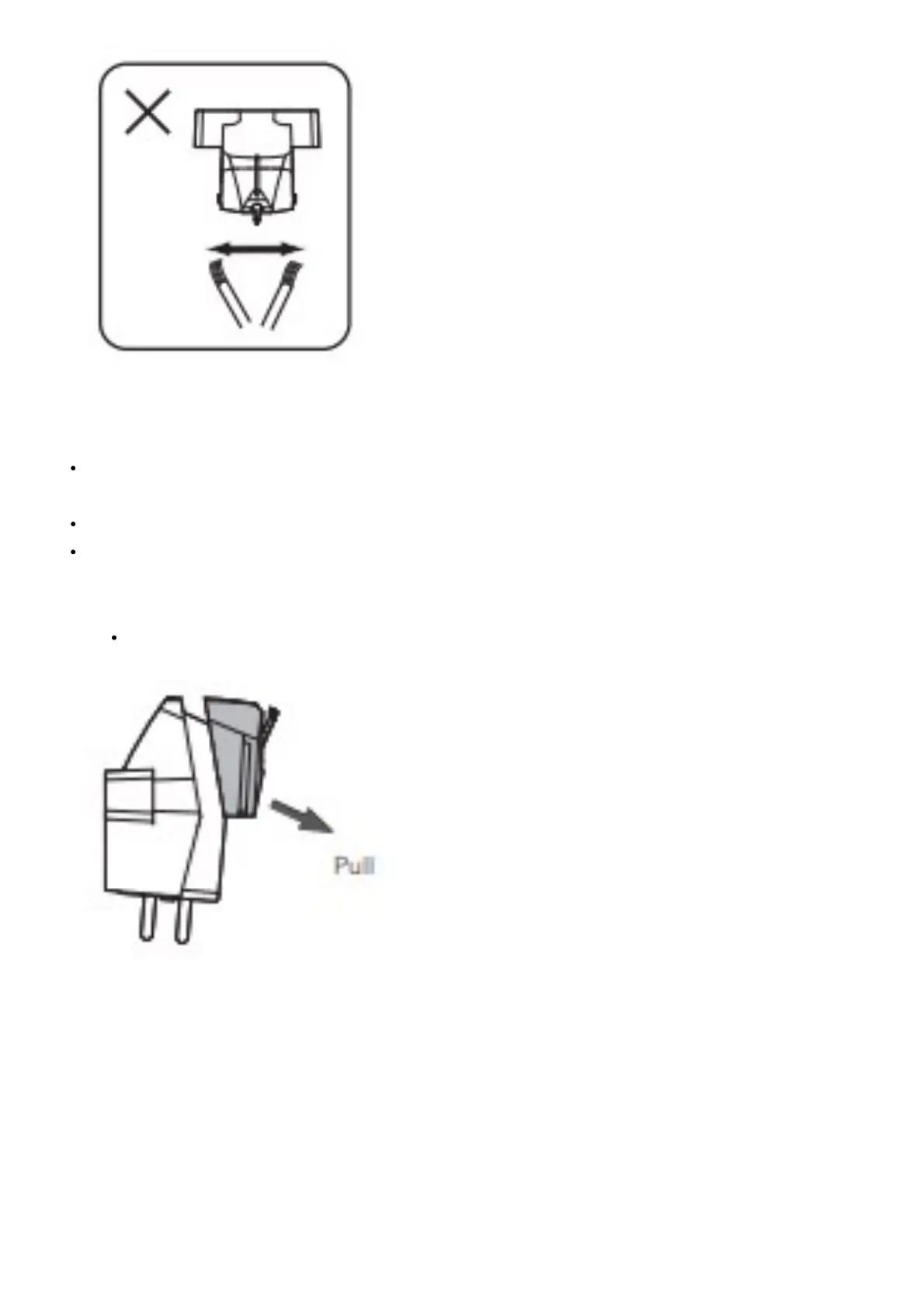 2. After lowering the cartridge’s protector, remove the stylus by pulling in the direction of the arrow.
