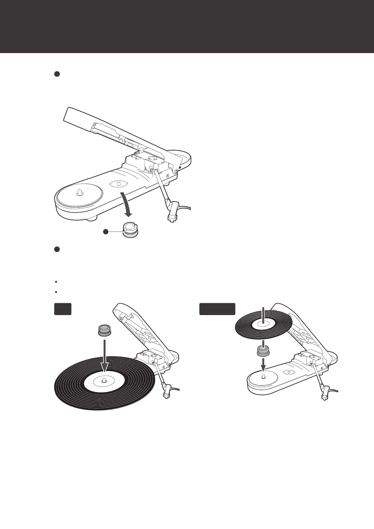 Place the 45 RPM adapter below the record when playing 45 RPM records.