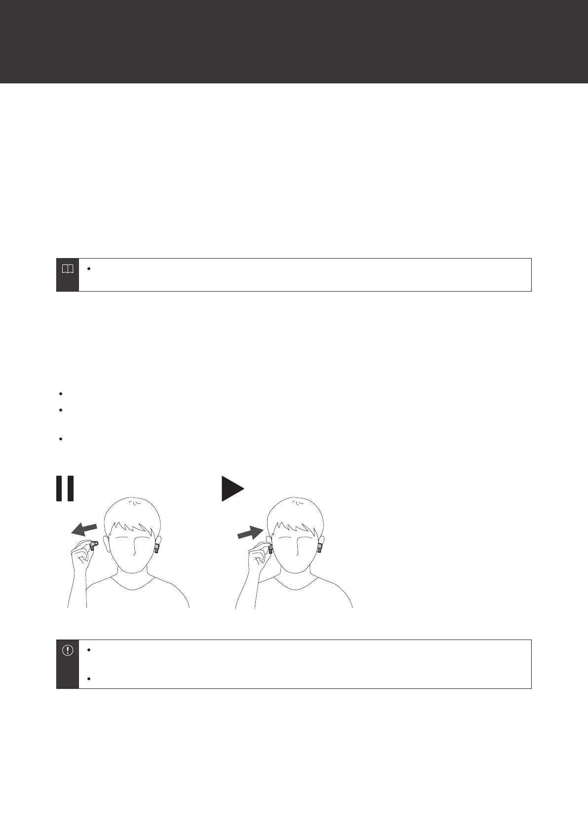 When removing the headphones from your ears, music is paused automatically. Music playback will resume when the