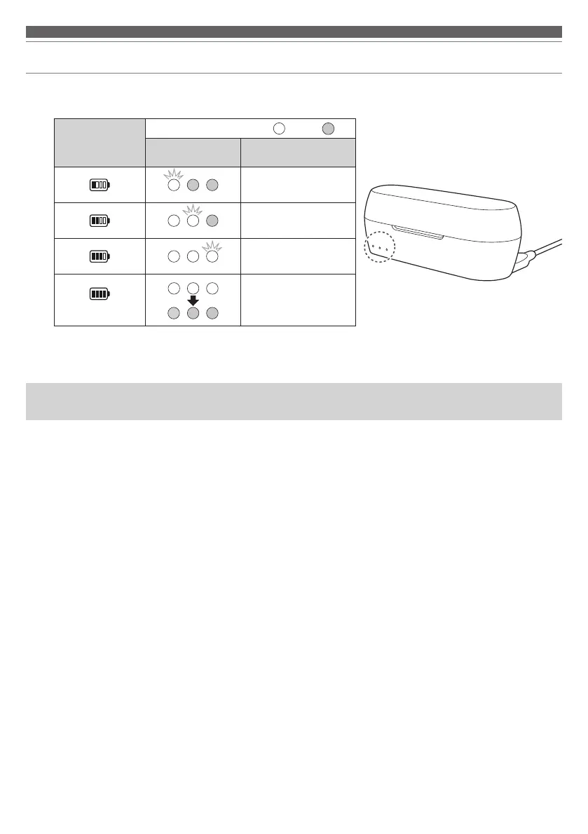 • During charging, the 3 charging indicator lamps light and flash as follows to indicate the battery level of the