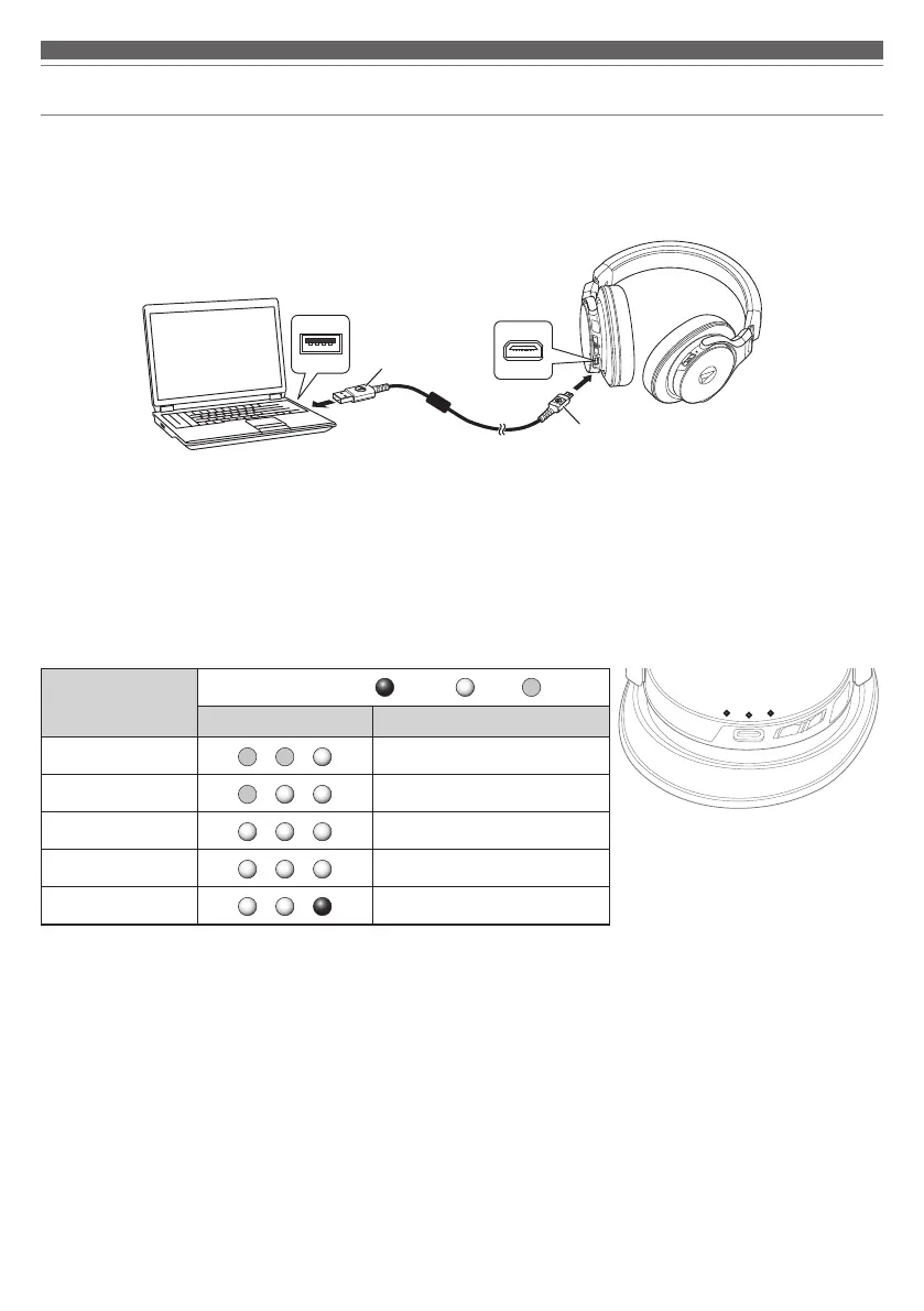 • Если аккумулятор разряжается, изделие издаст 2 серии по 2 звуковых сигнала через наушники, а индикаторная лампочка