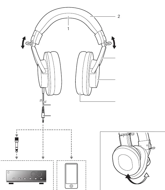 • Sold separately: Earpads, 6.3 mm (1/4”) stereo adapter