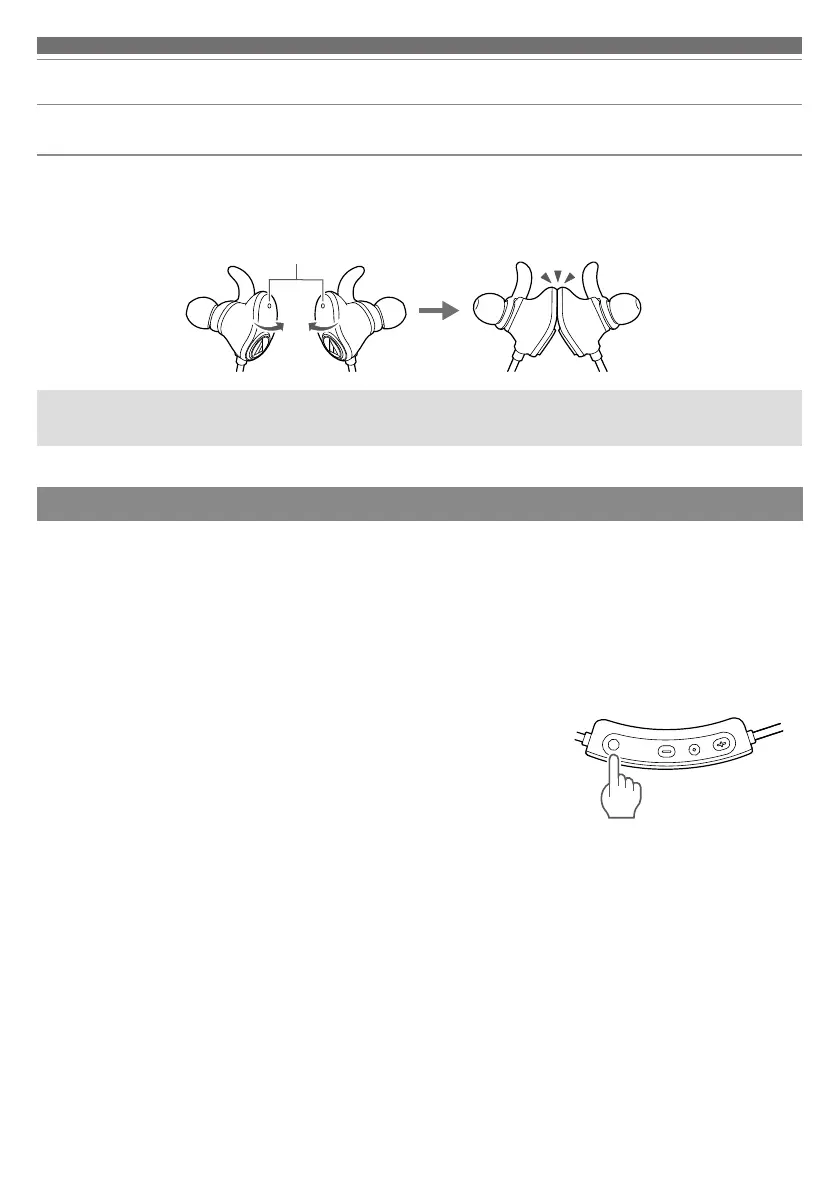 The left and right headphones can be secured with their magnet sensors. When the headphones are secured, music