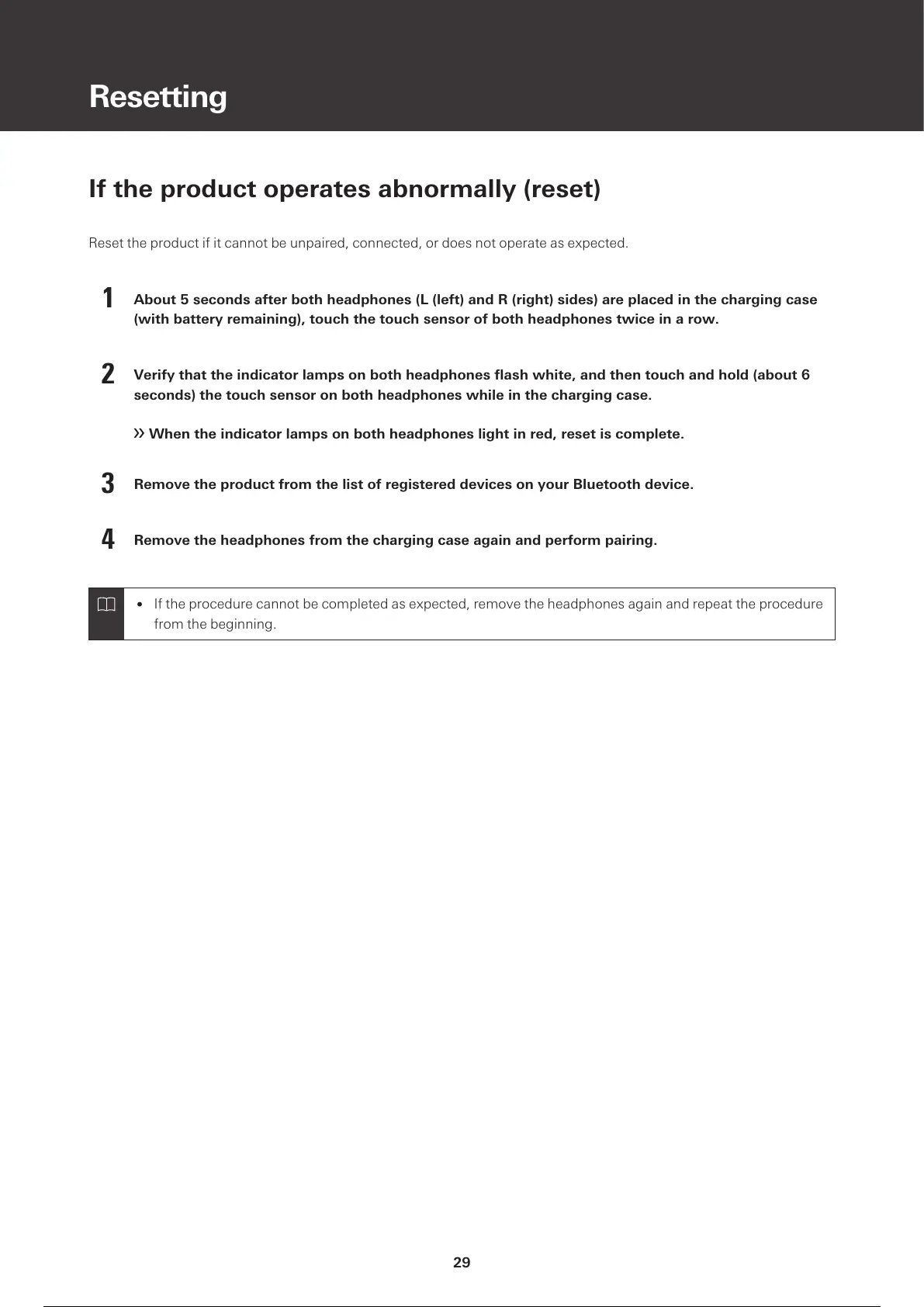 Reset the product if it cannot be unpaired, connected, or does not operate as expected.