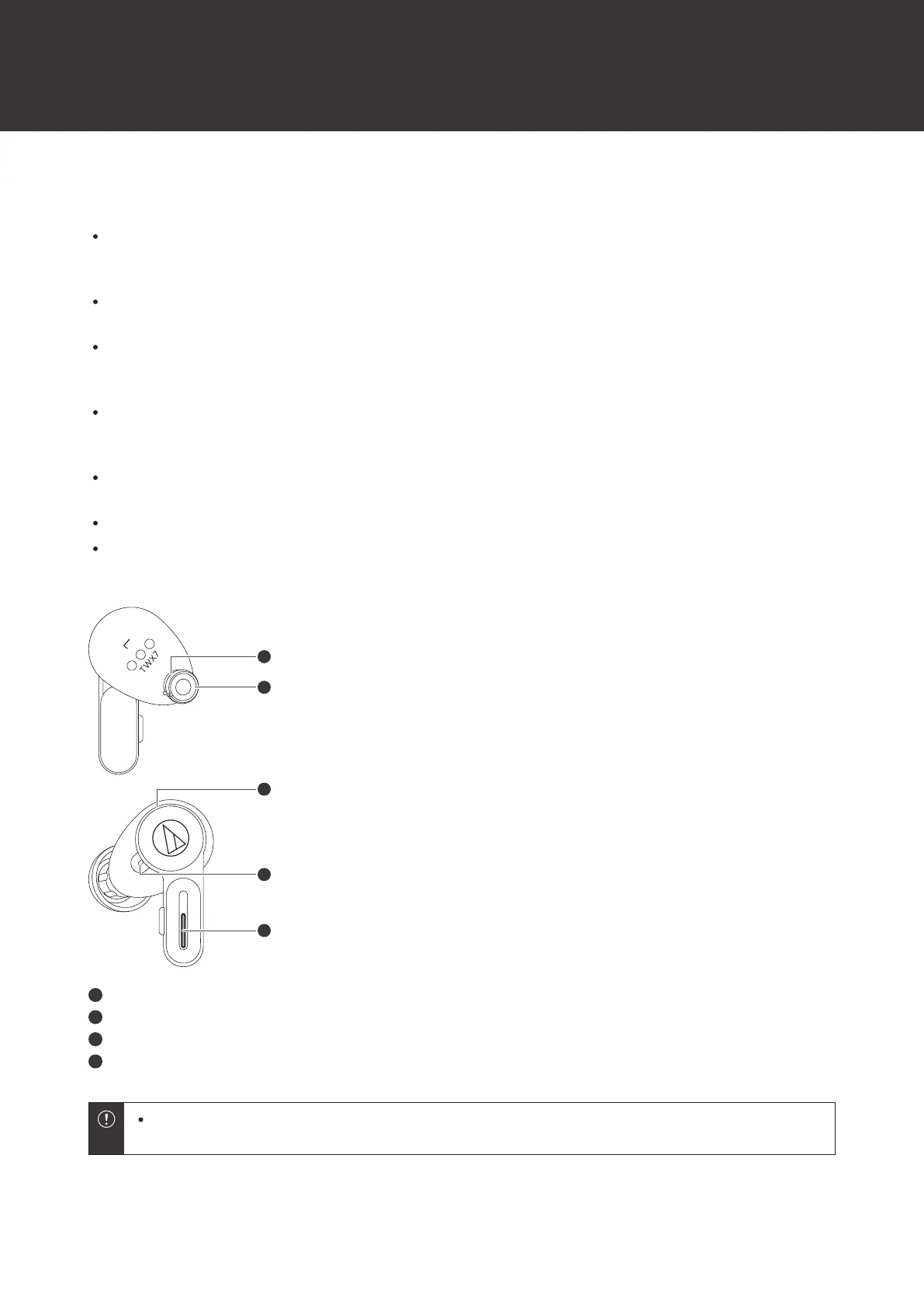 are not cleaned, the eartips can become detached. Clean them regularly. Do not touch the areas where sound is