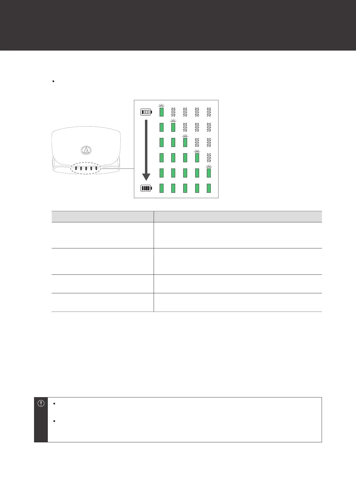 While charging, the five charging indicator lamps light/flash as follows. (It may take several seconds for the