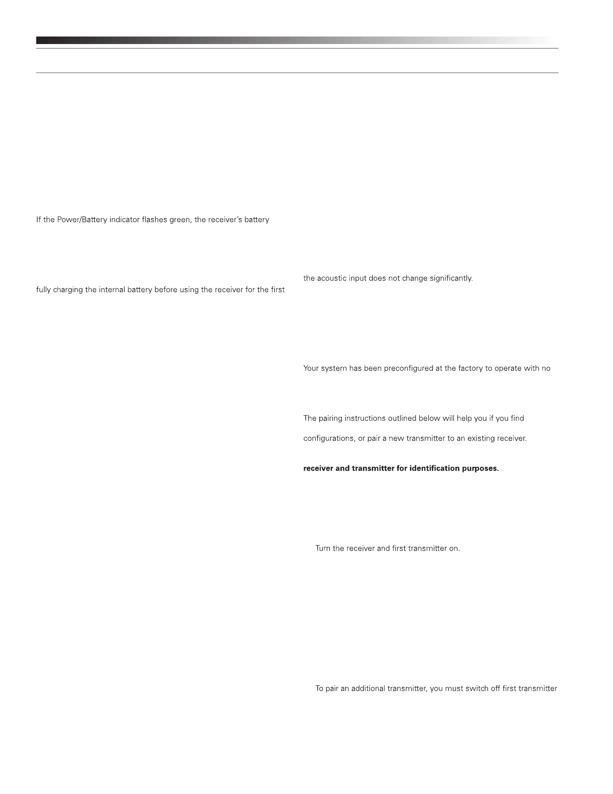 Press and hold receiver power button to turn receiver on. Power/Battery