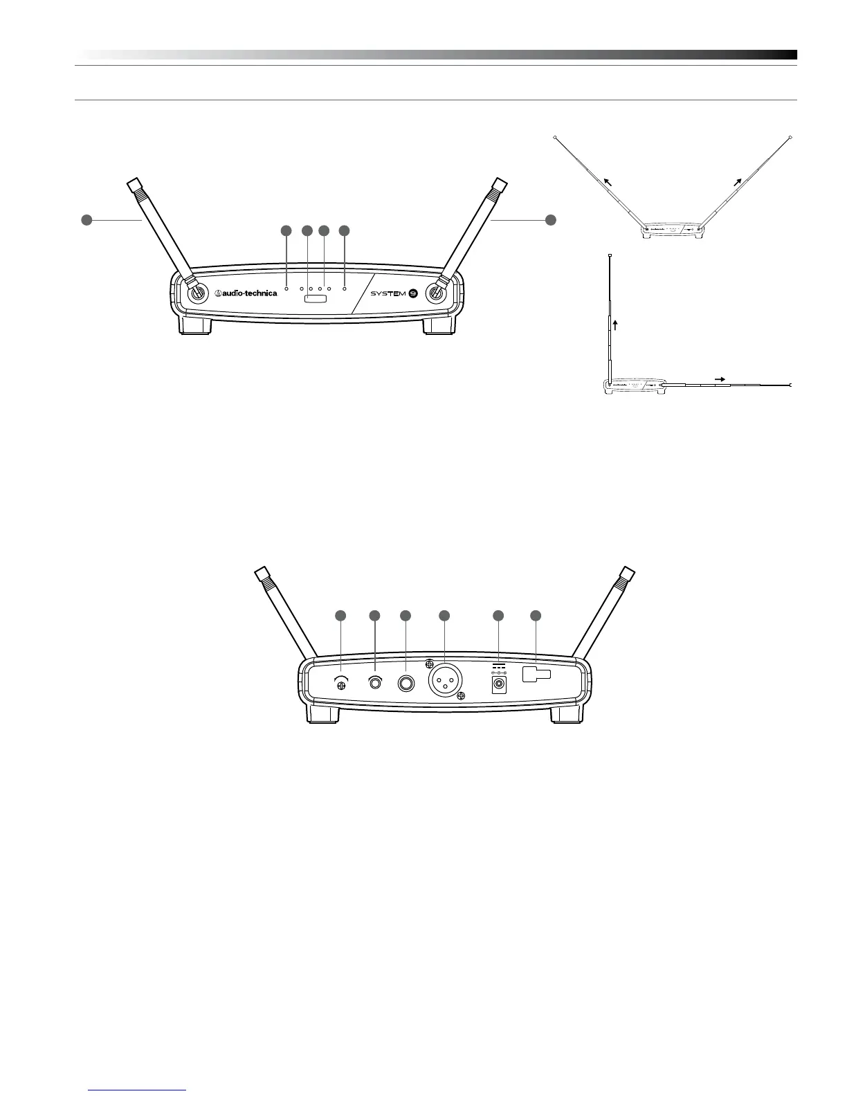 2. RF INDICATOR: Lights to show presence of transmitter signal.