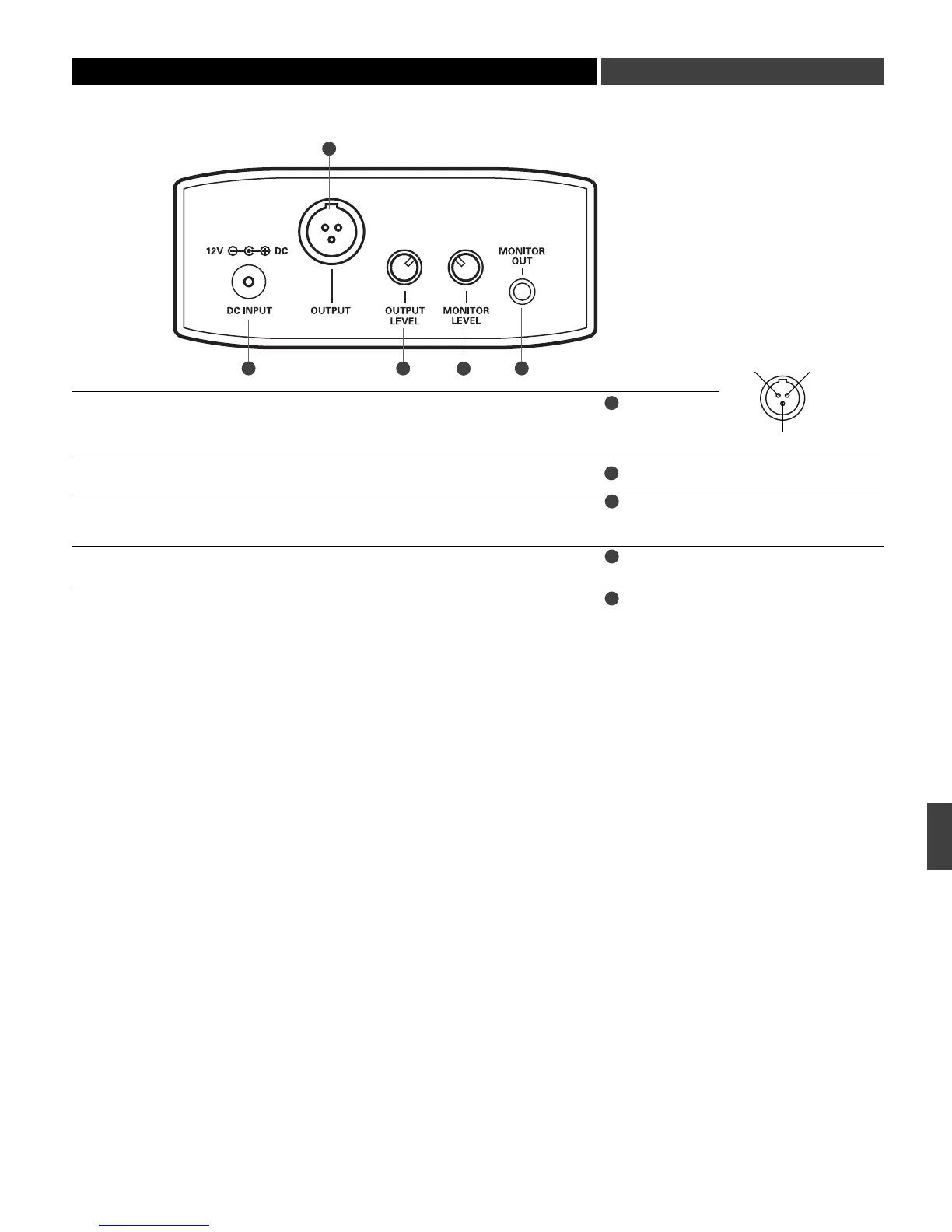 Spina di uscita audio bilanciata: connettore tipo TA3M. Polo 1: massa (schermo); polo 2: “audio +”;